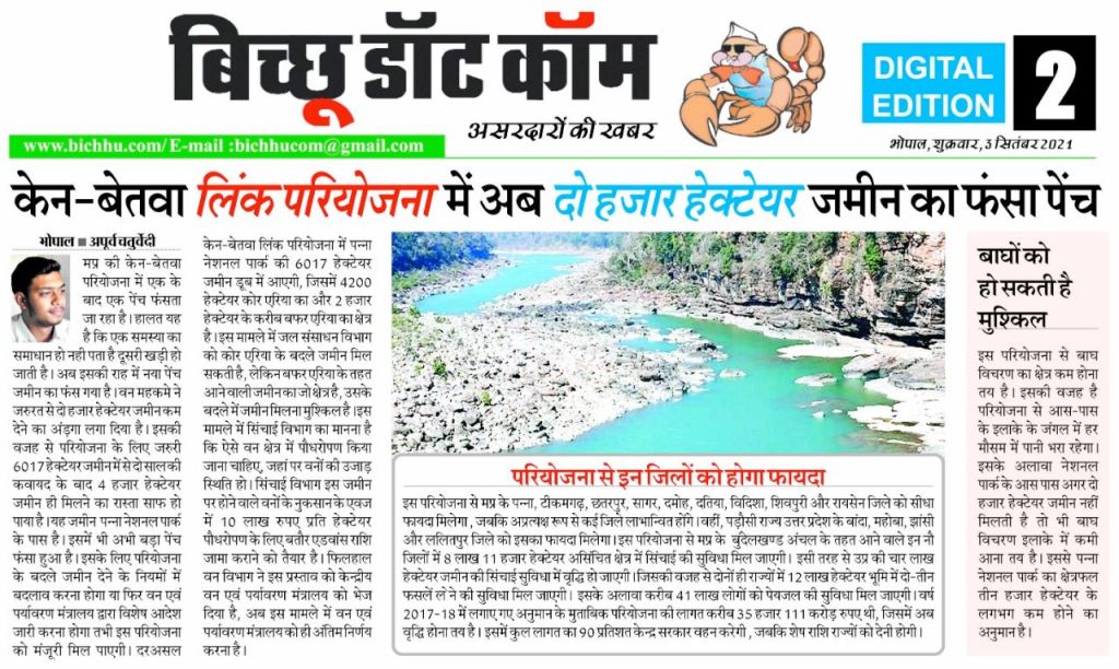 Lot of inaccuracies in this article, but it seems to suggest that a proposal has been sent to MoEF to allow 2000 ha of compensatory afforestation be allowed in degraded forest land, rest of 4200 ha of non forest land in contiguous (with Panna Tiger Reserve) area will be provided in Ken Betwa River Link Project.
