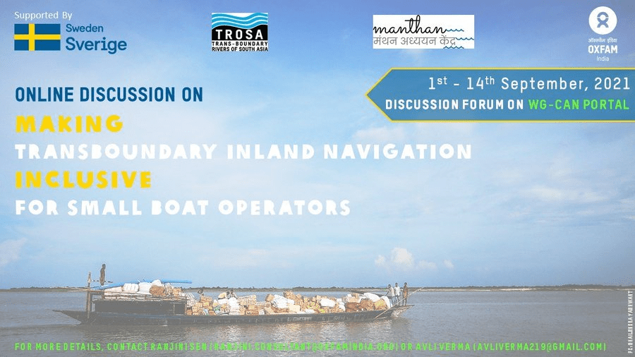 Online Discussion Forum on ‘Making Transboundary Inland Navigation Inclusive for Small Boat Operators’ will be live from the 1st-14th of September 2021. Share your ideas by registering to the Water Governance Collective Action Network website – http://wgcan.in