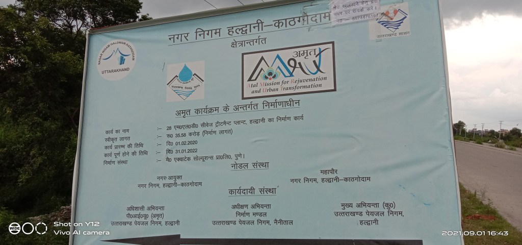 Currently, a 28 MLD STP is under construction[xxv] on 4 hectare of land near Indra Nagar along Haldwani bypass road under AMURT scheme. The construction company is M/s Aquatech Solution Private Ltd..