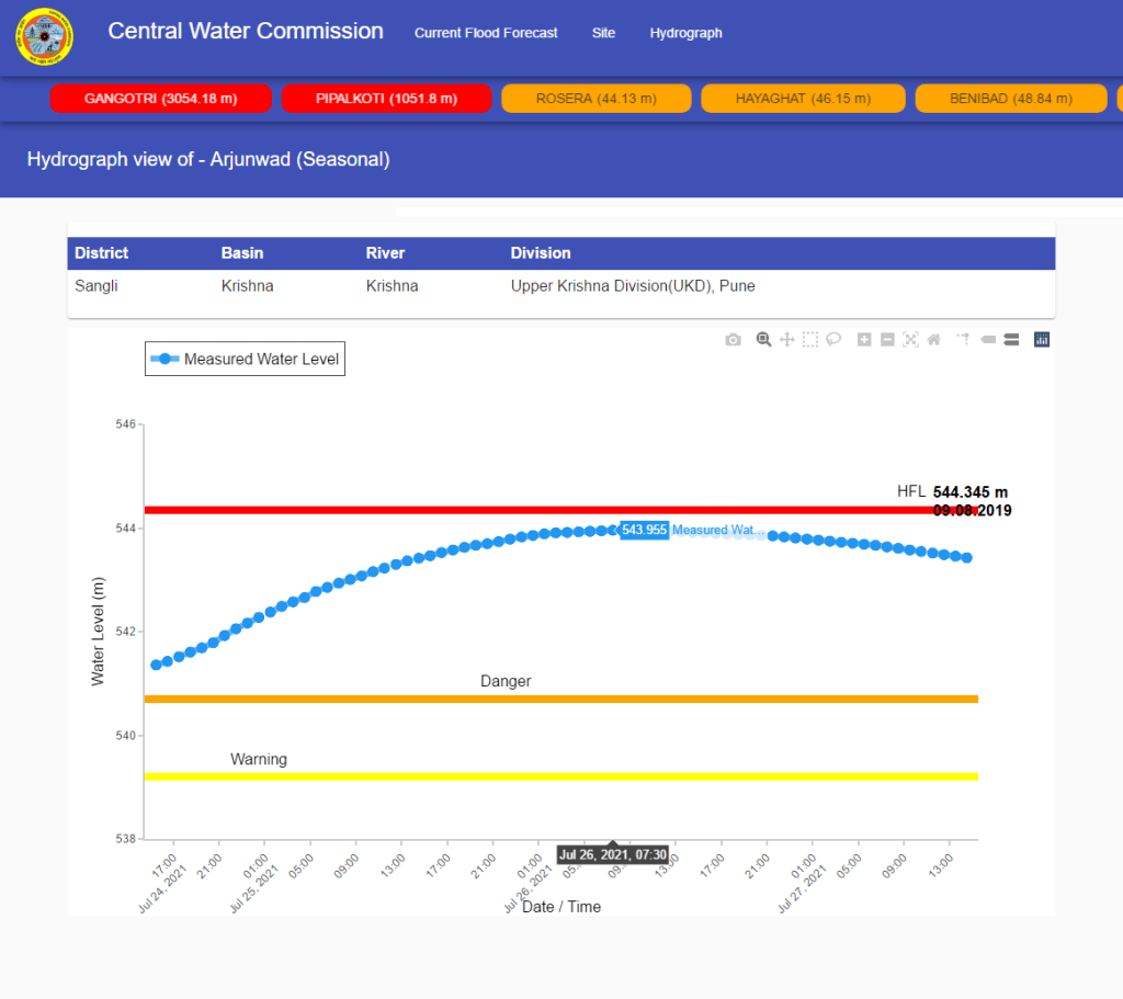 | 4 | Muradpur | Vashisti | Ratnagiri Maharashtra | 8.22 m | 04.08.2019 | 9.63 m | 23.07.21 05:00 hrs | 1.41 m | ||