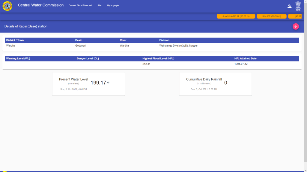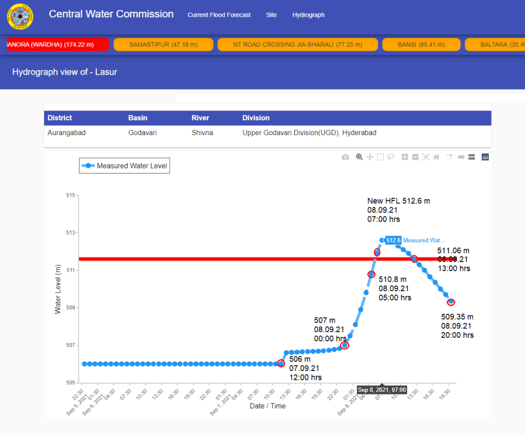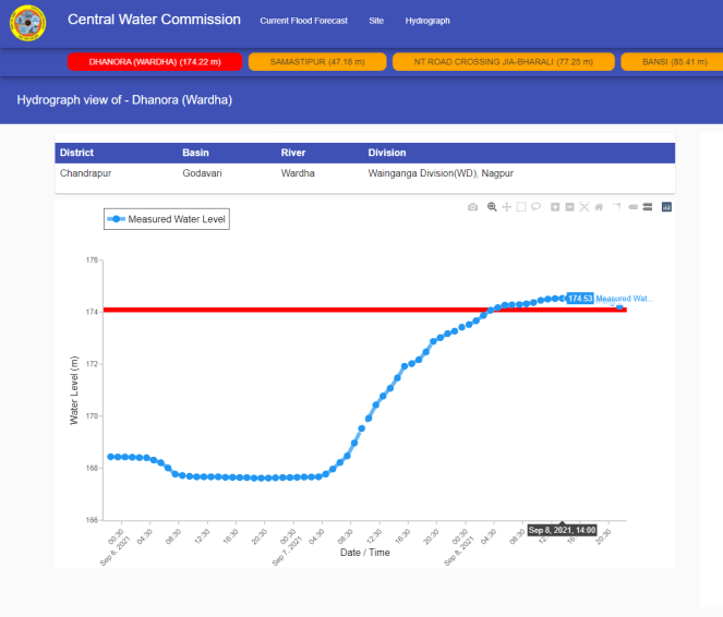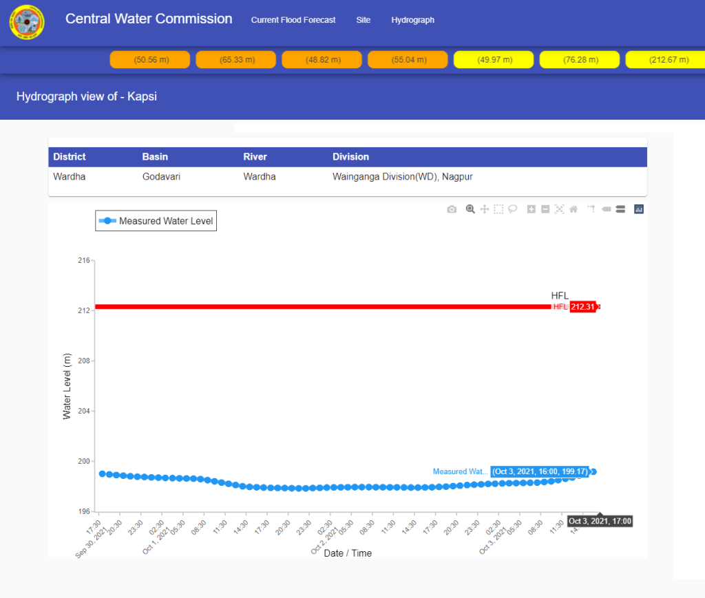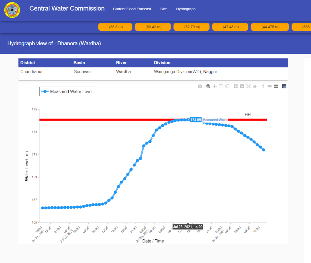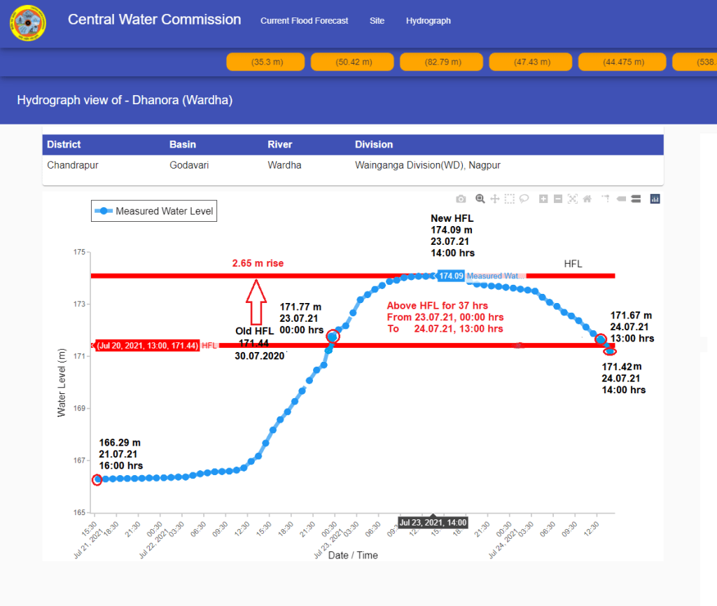 HFL breach is crucial point for better flood monitoring and forecasting. But publishing different HFLs for Kapsi, Dhanora sites on Wardha river and Tharnam on Penganga sites shows CWC’s inconsistency and negligence. There is no archive of its hydrographs.