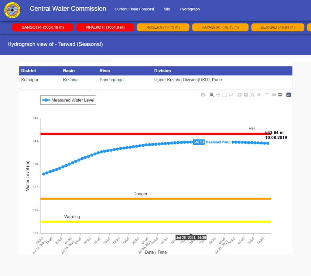 | 7 | Terwad | Panchganga Krishna | Kolhapur Maharashtra | 534 m | 536 m | 541.64 m 10.08.2019 | 540.93 m 26.07.2021 | 0.71 m |