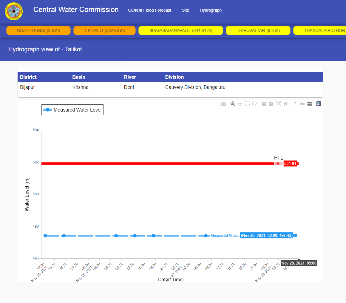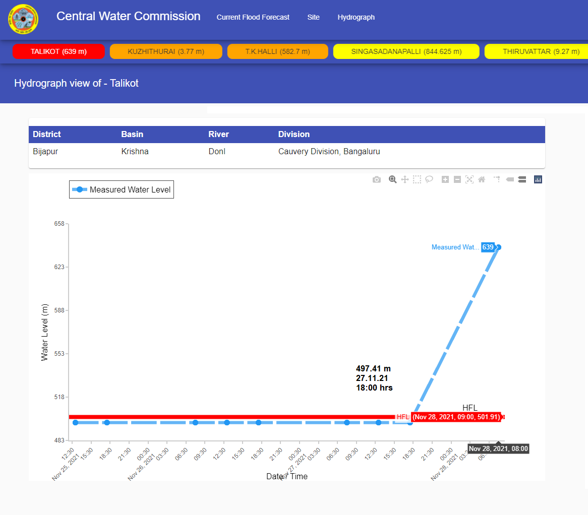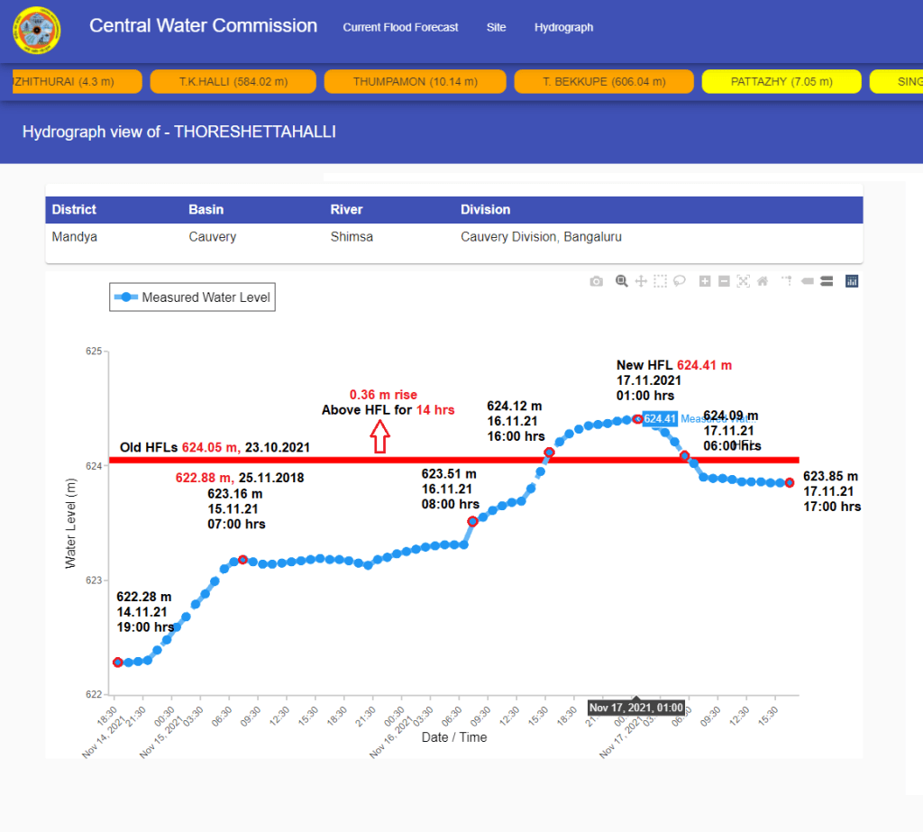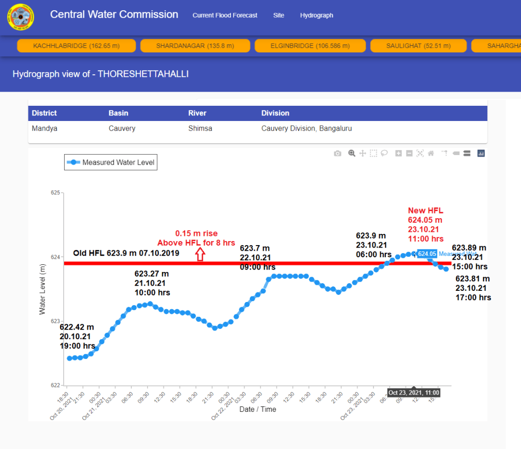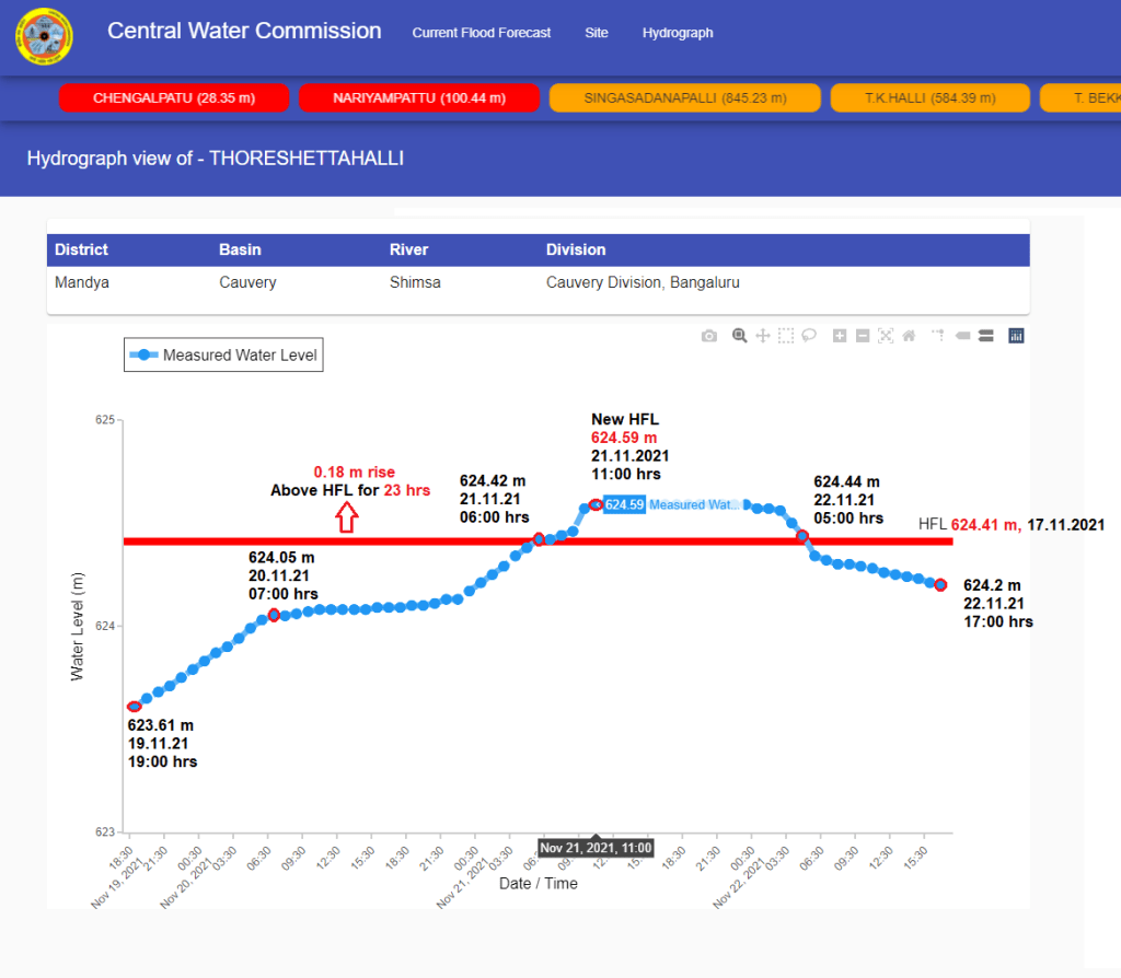 | 1 | Thoreshettahalli Shimsa | Mandya Karnataka | 624.41 m | 17.11.2021 01:00 hrs | 624.59 m | 21.11.2021 11:00 hrs | 0.18 m | 23 hrs | No | |