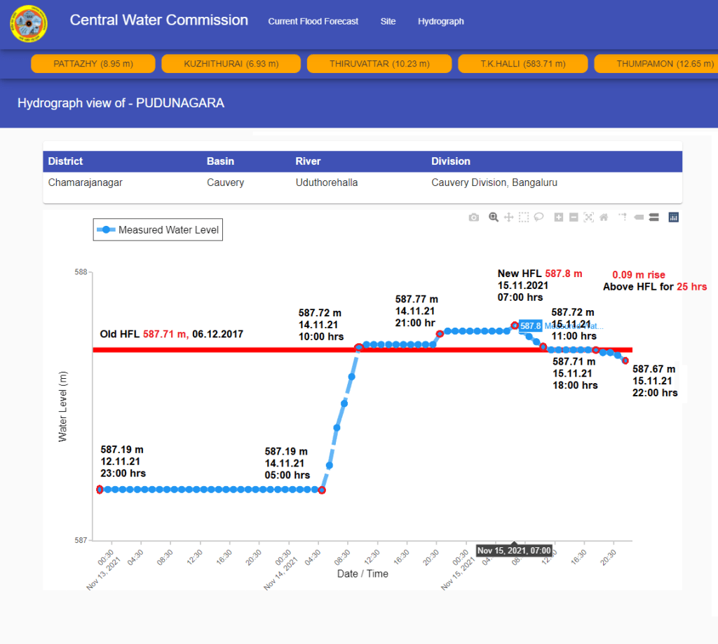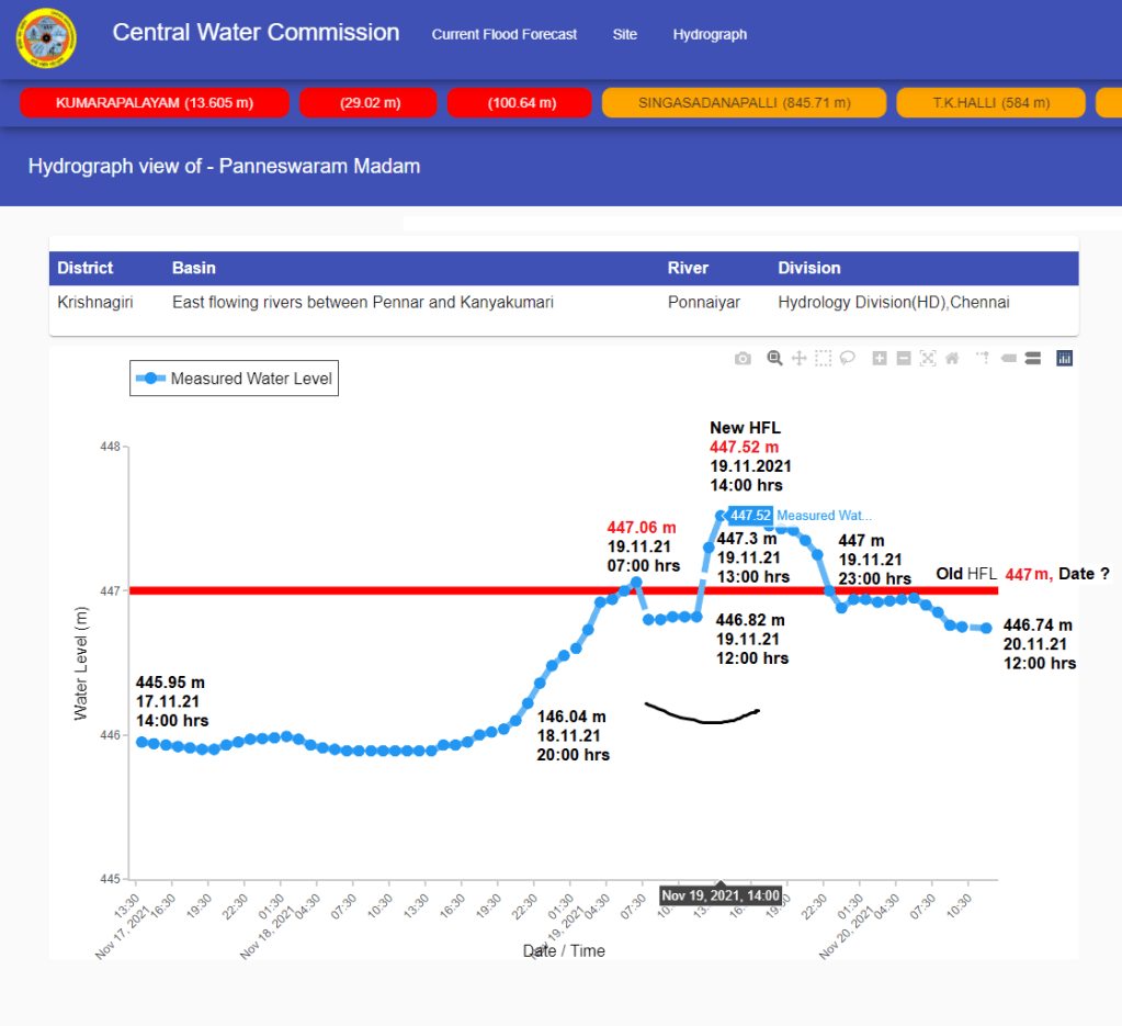 | 3 | Panneswaram Madam Ponnaiyar | Krishnagiri Tamil Nadu | 447 m | NA | 447.52 m | 19.11.2021 14:00 hrs | 0.52 m | 16 hrs | Yes | |