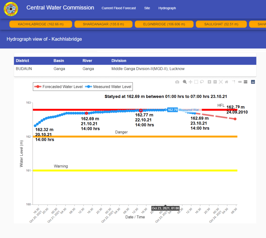 | 2 | Kachhla-bridge Ganga | Budaun, Uttar Pradesh | 161 m 162 m | 162.79 24.09.2010 | 162.79 m 23.10.2021 01:00 hrs | Touched |