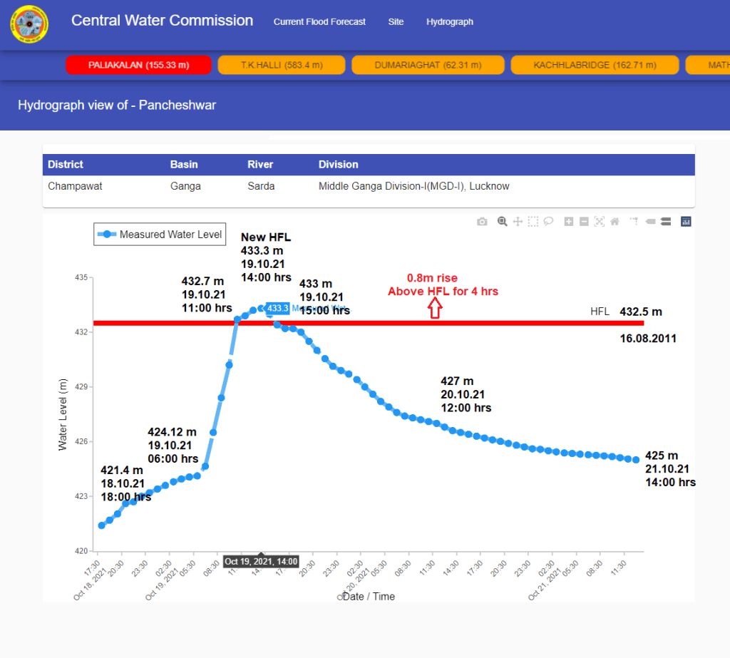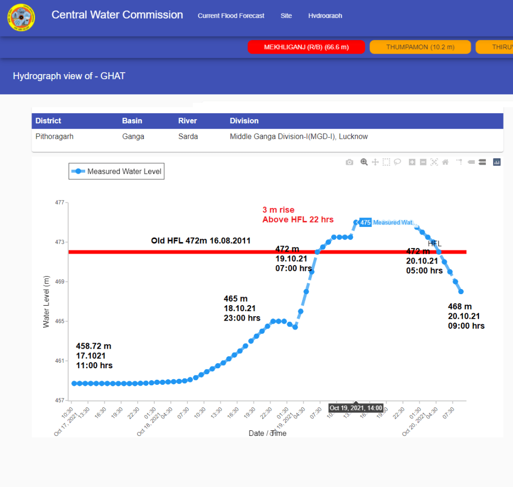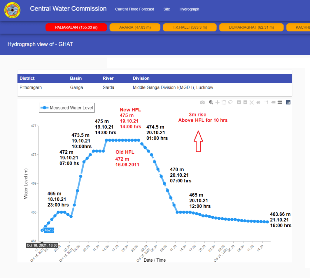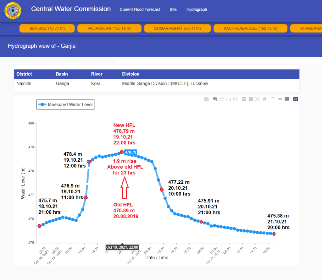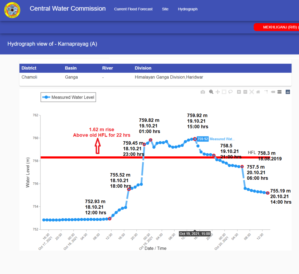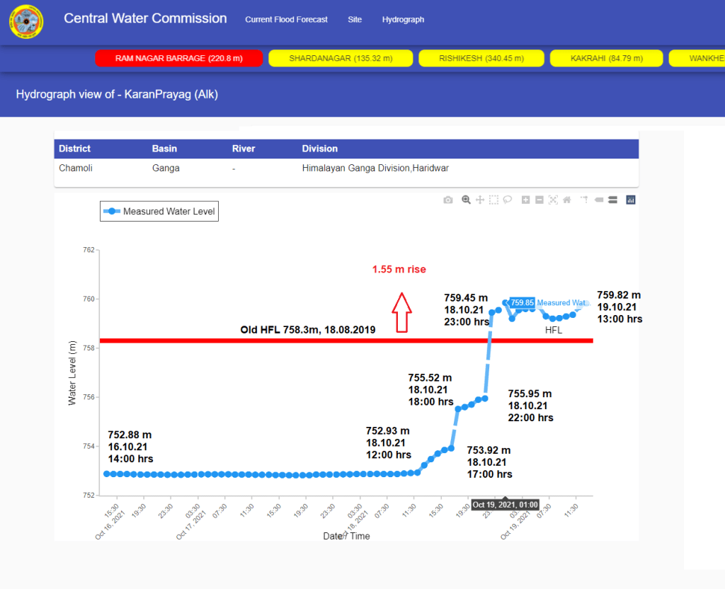 | 1 | Karanprayag (A) NA | Chamoli Uttarakhand | 758.3 m | 18.08.2019 | 759.92 m | 19.10.2021 15:00 hrs | 1.62 m | 22 hrs | No | |