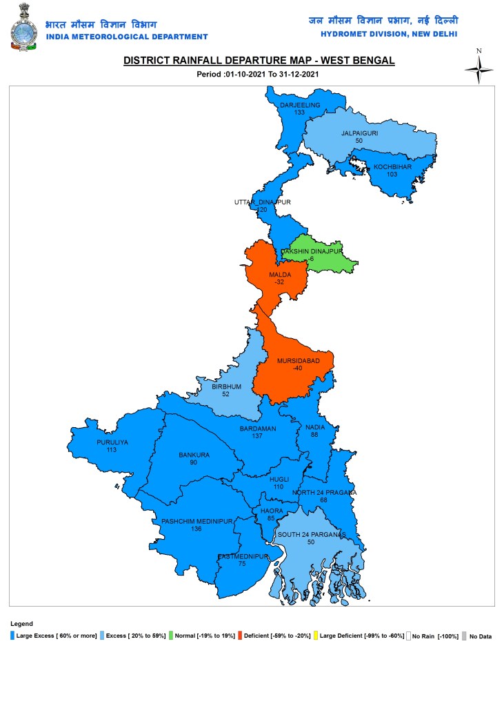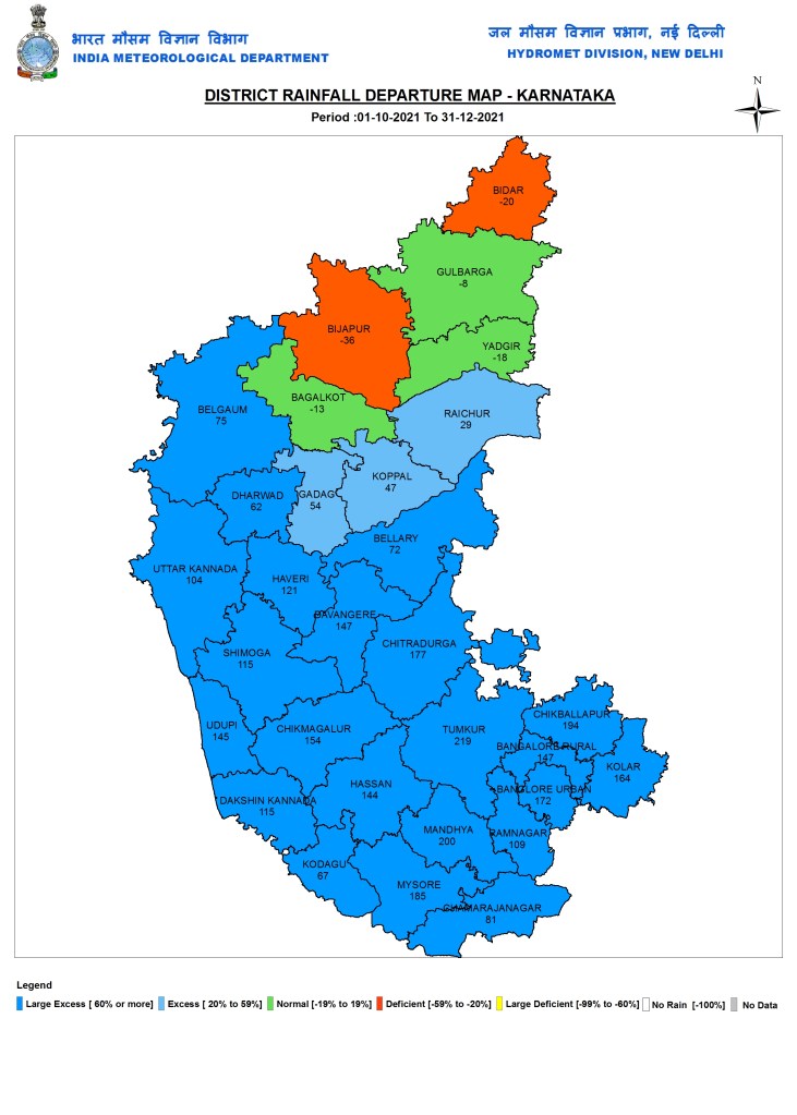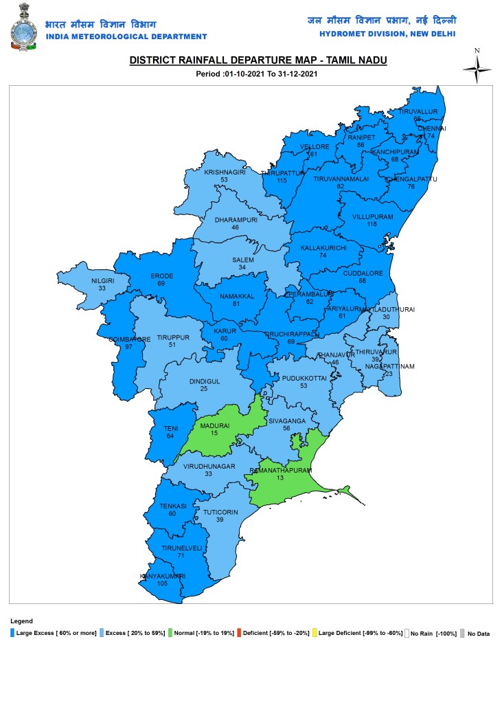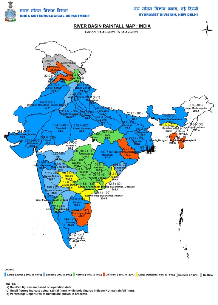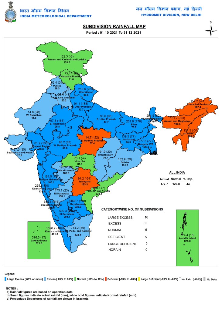 This three-month period from Oct 1, to Dec 31 includes the North East Monsoon that mainly affects parts of South India including Tamil Nadu, Puducherry, Rayalseema, parts of Karnataka and Kerala. However, since the South West Monsoon had not yet withdrawn from the country by Sept 30, a significant proportion of the rainfall in October was contribution of the SW monsoon. This was similar situation in 2019 and 2020[ii] too.