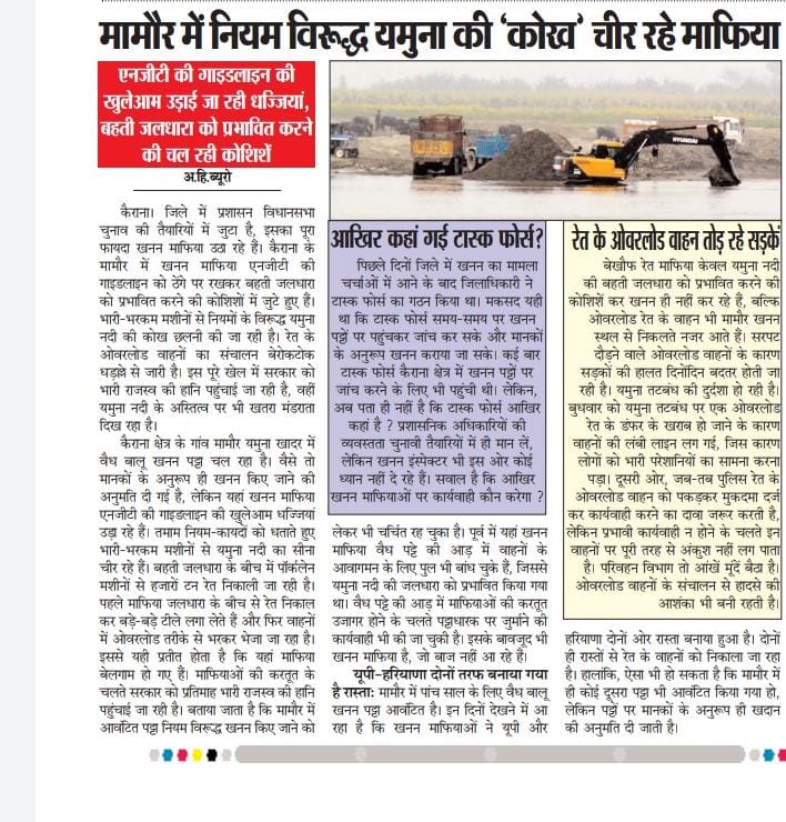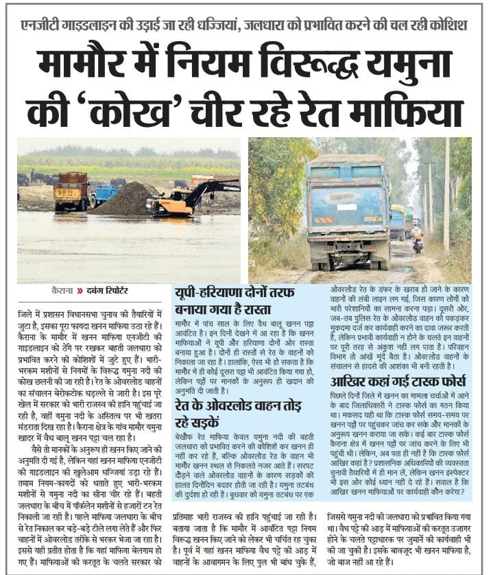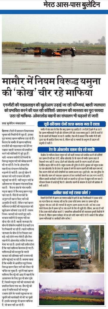 Local media clips on illegal mining going on in Yamuna river at Mamor, Kairana.