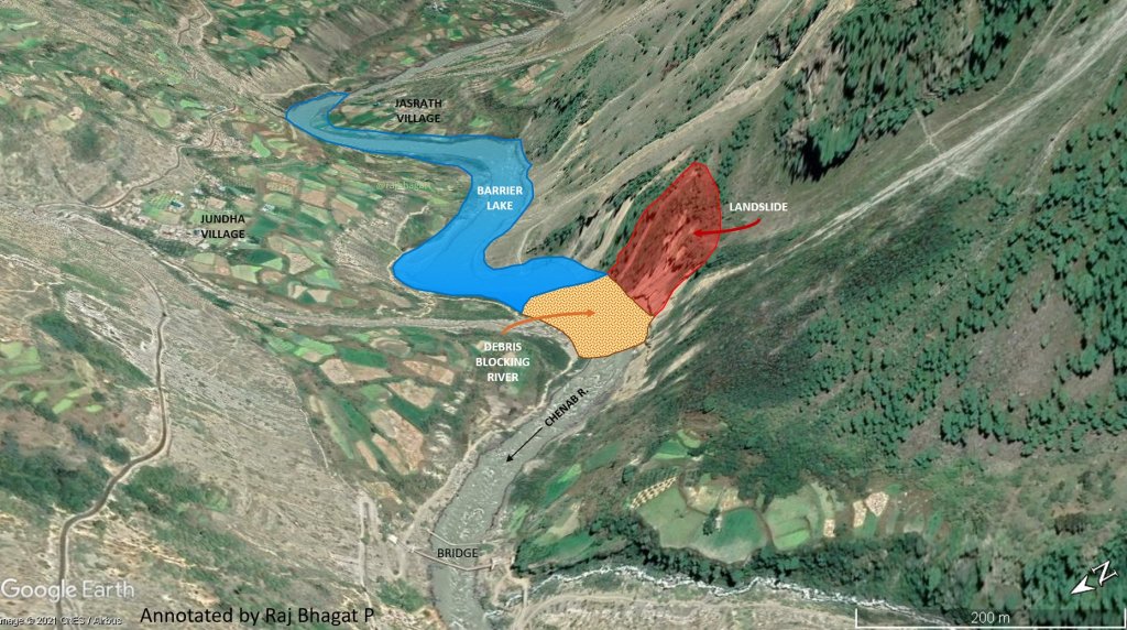 Landslide DAM on Chenab Google Earth imagery shows scars of several landslips, landslide along the river in the past. The incident reveals how vulnerable is Chenab valley to such disasters where series of hydro power projects are planned on Chenab and key tributaries like Meyar, Chandra, Bhaga rivers.