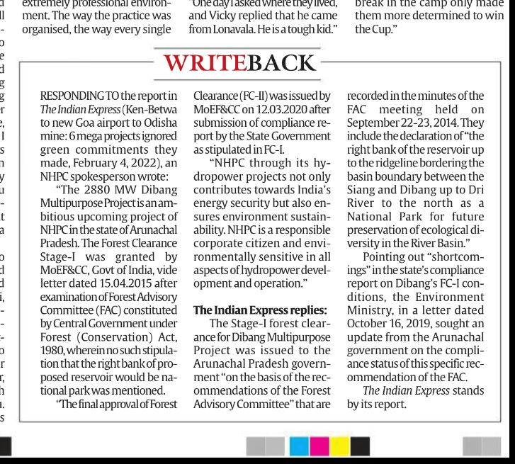 NHPC’s non response to Indian Exp on Dibang HEP and IE reply on Feb 7, 2022: