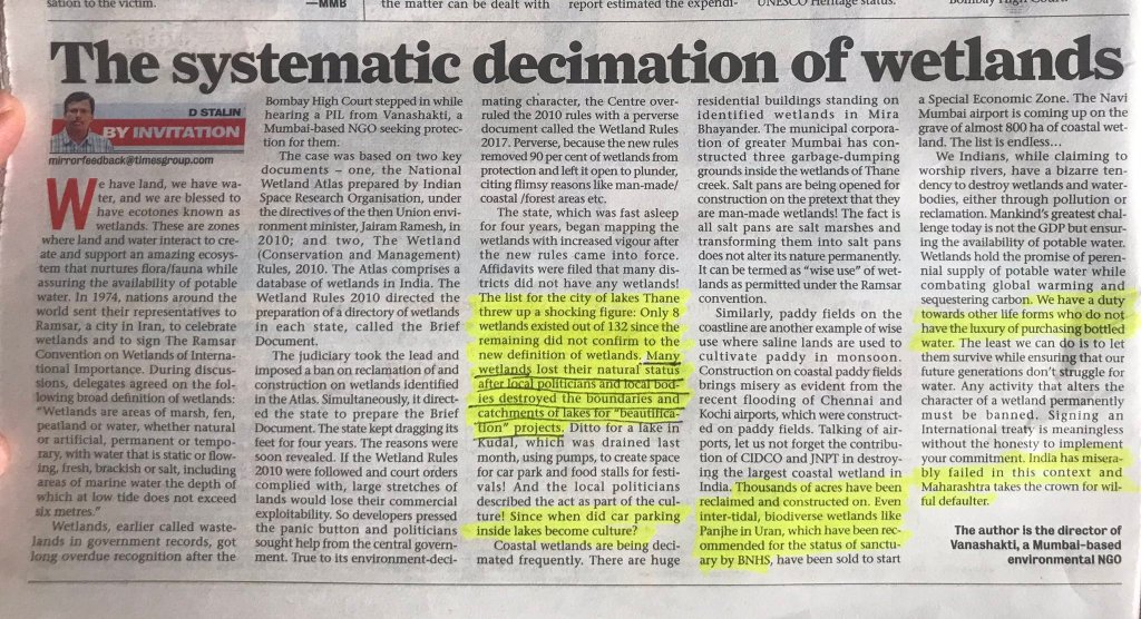 SANDRP Blog World Wetlands Day 2022: People’s Actions for Wetlands in India World Wetlands Day is celebrated on February 02 annually to highlight the importance of wetlands around the world. The theme for 2022 is Wetlands Action for People and Nature. As part of our annual overview; we have compiled here positive initiatives by individuals and groups for wetlands in India in 2021. https://sandrp.in/2022/02/01/world-wetlands-day-2022-peoples-actions-for-wetlands-in-india/ (01 Feb. 2022)