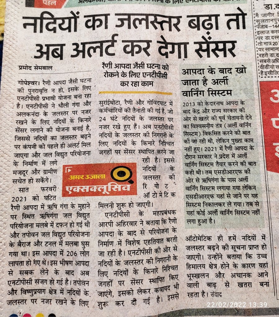 Uttarakhand Even after passing one year of Chamoli disaster EWS still not installed at NTPC’s Tapovan Vishnugad HEP in Joshimath.