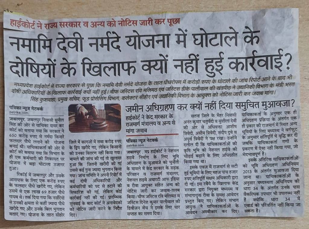NARMADA Madhya Pradesh HC has asked the govt why no action has been taken in the scam worth crores of rupees in the Narmada related project even after investigation recommended actions.