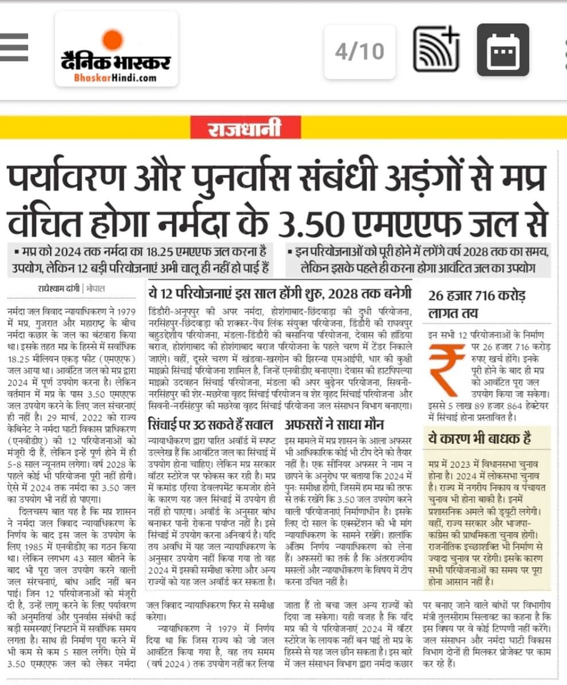 Sardar Sarovar Project The Narmada Water Disputes Tribunal Award’s review deadline in 2024 pressurises Madhya Pradesh govt to push more big dams on the Narmada river.