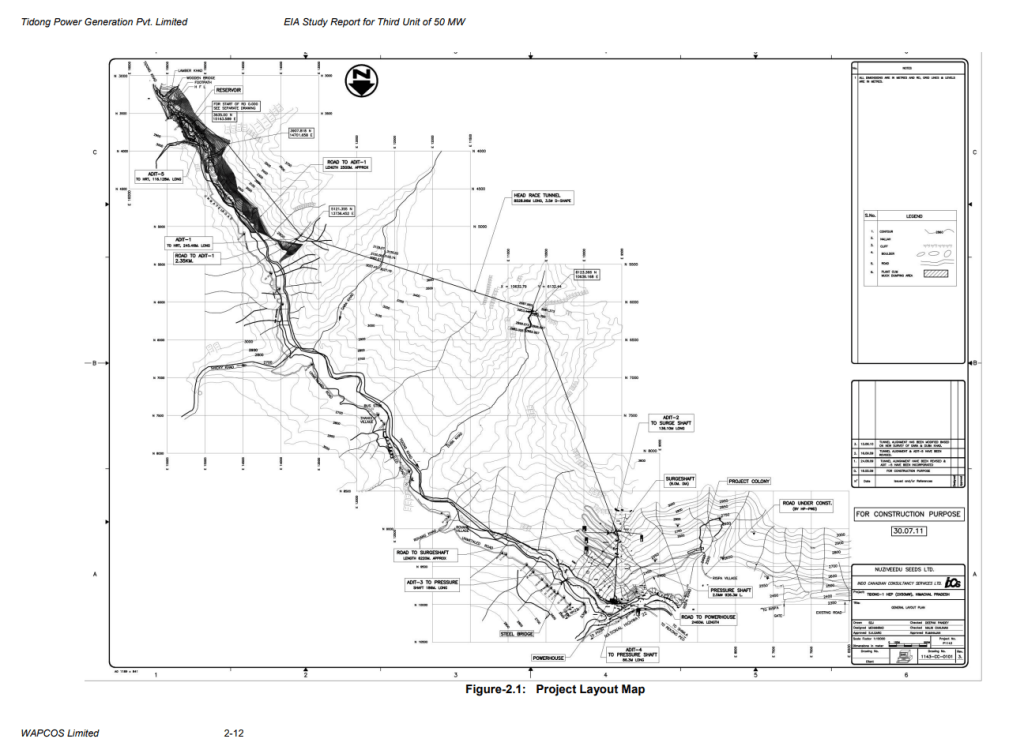 Tidong HEP project layout map. Source:- Draft EIA for third unit of 50 Mw of Tidong HEP, March 2020.