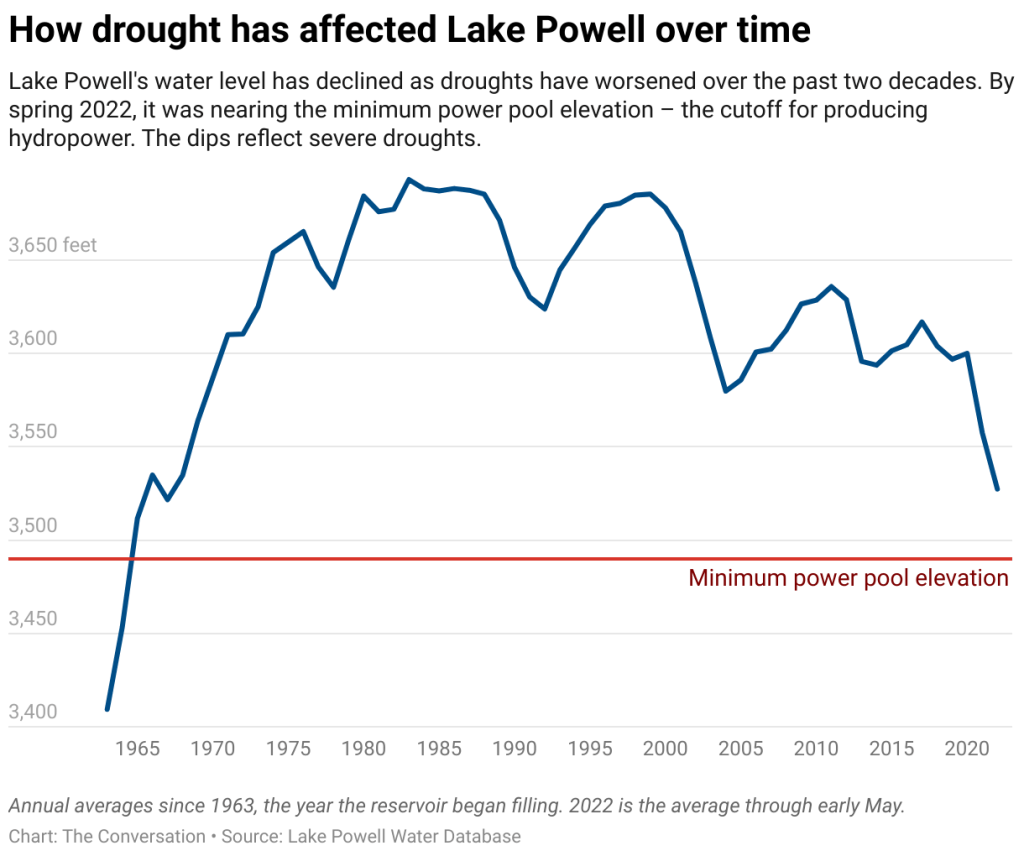 Chart: The Conversation Source: Lake Powell Water Database Get the data Download image