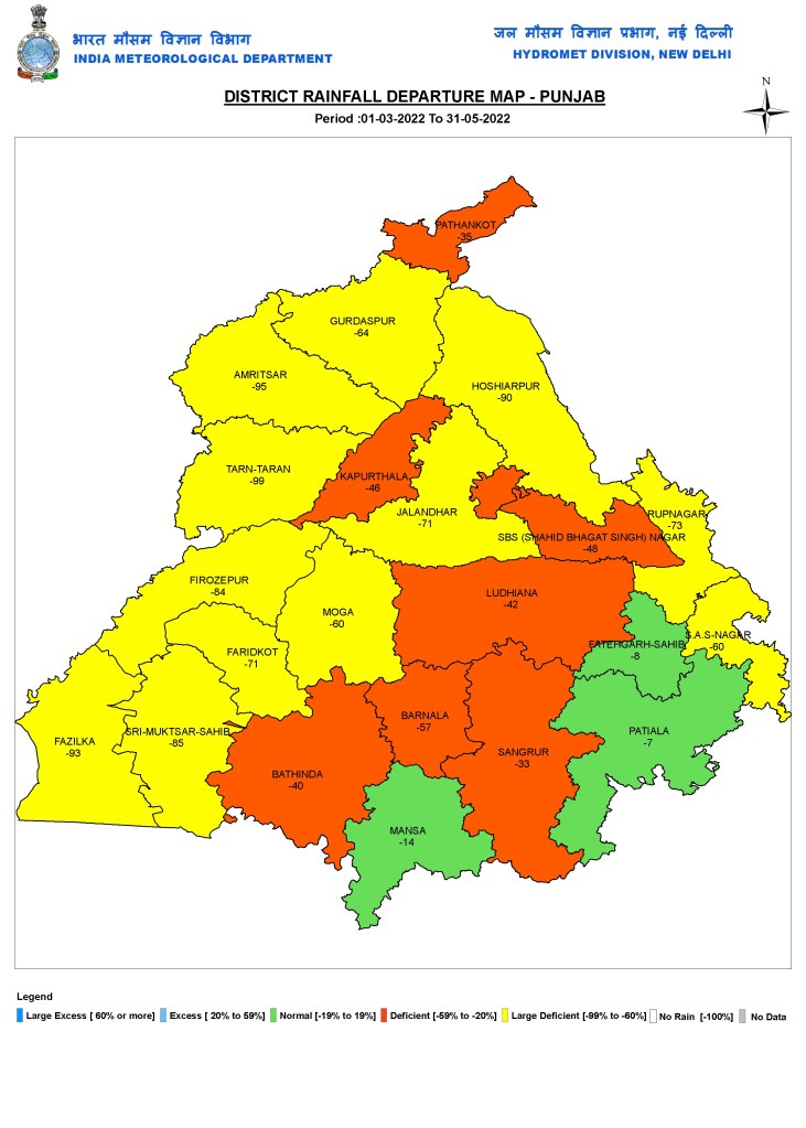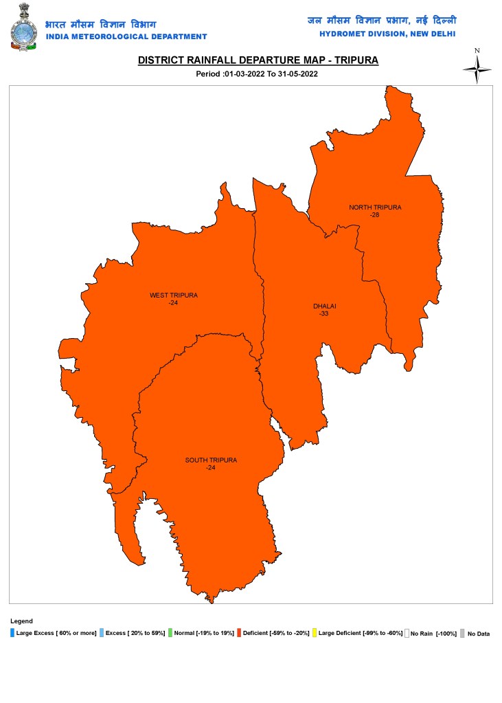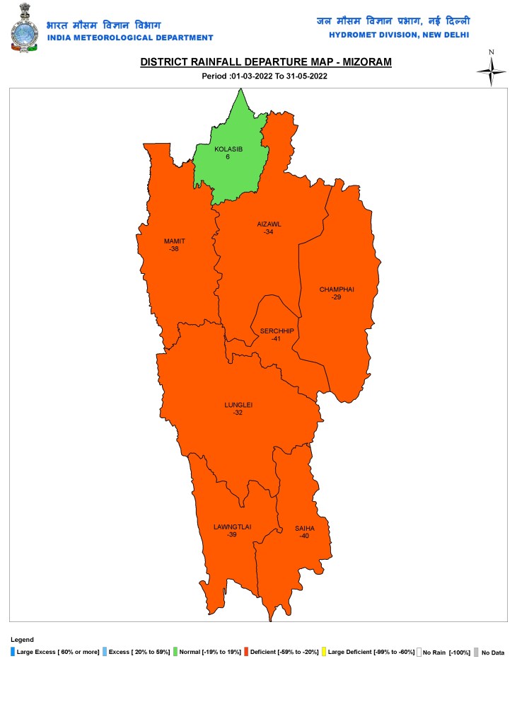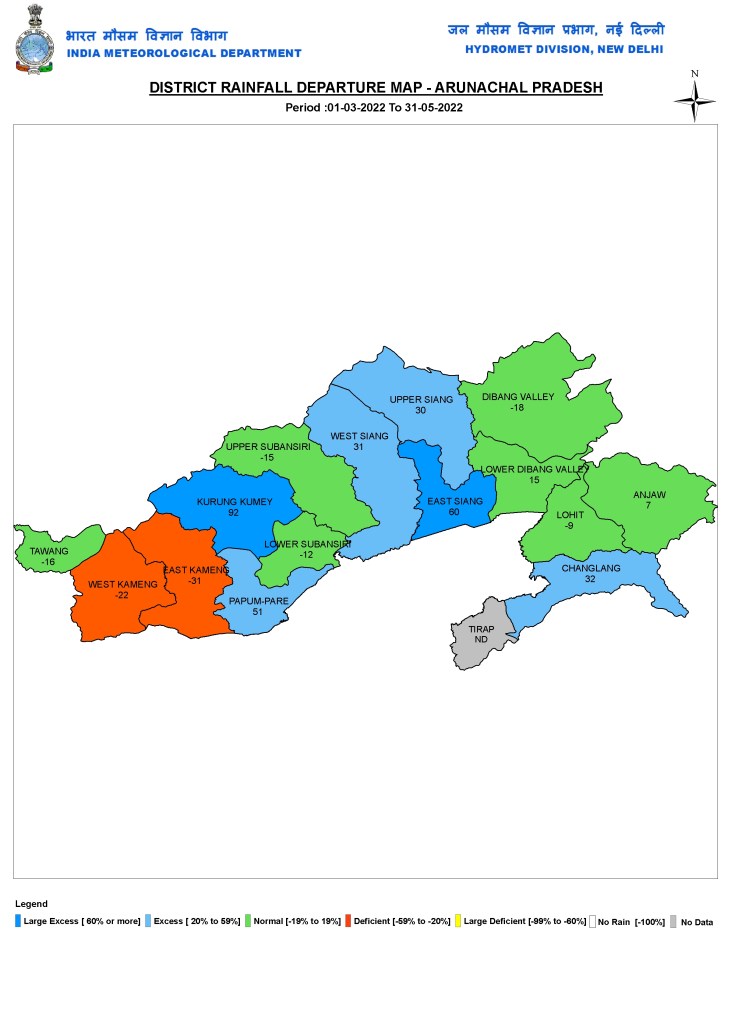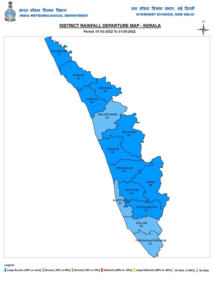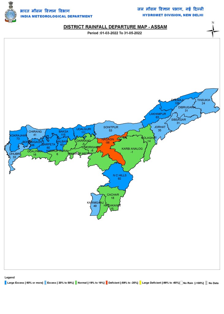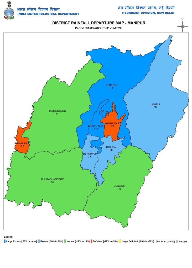 ALL INDIA Sub Division wise Rainfall distribution As can be seen from the IMD map below, out of 36 meteorological sub divisions of IMD, Six had large Excess, Four had Excess, Eight had Normal, Ten had deficit rainfall and eight had large deficit rainfall in pre monsoon 2022 season.