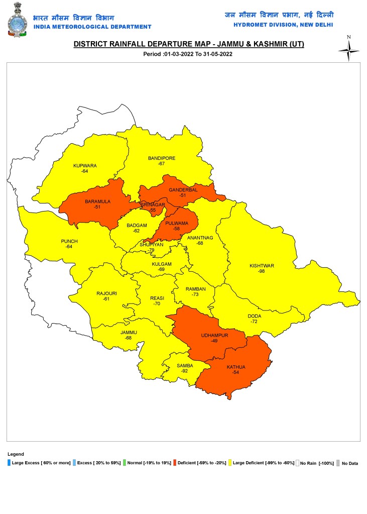 STATE WISE DISTRICT WISE RAINFALL: NORTH ZONE: Jammu & Kashmir