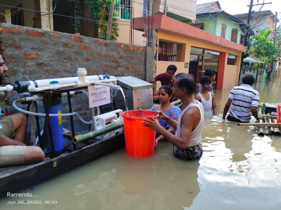 (Feature Image:- DDMA, UNICEF and Oxfam have innovated boat-mounted water treatment units to provide life-saving water to the people in need within Silchar & its peripheral areas. Source:- Assam State Disaster Management Authority )
