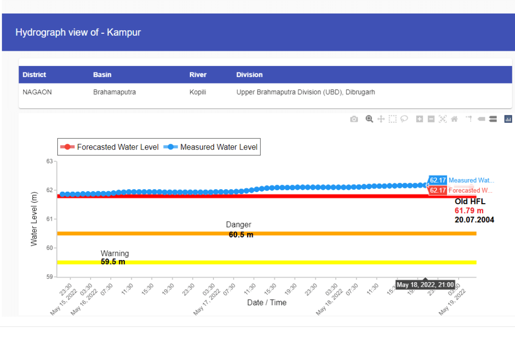 In the third week of May 2022, River Kopili at Kampur Level Forecast (LF) site in Nagaon district of Assam has witnessed Extreme Flood Situation. The flood level at the site not only crossed the Highest Flood Level (HFL) there after 18 years but also stayed over HFL unusually for about 149 hours.