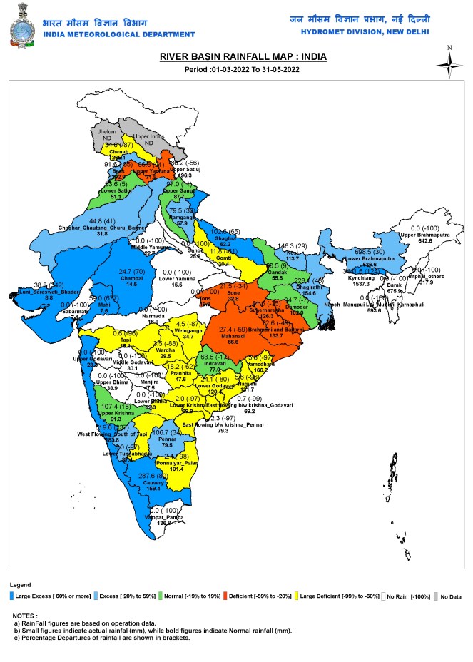 IMD director general Mrutyunjay Mohapatra predicted that the country will receive 103 percent of its long-term average rainfall this year. MET department had earlier projected southwest monsoon rains at 99% of LPA. https://economictimes.indiatimes.com/news/india/monsoon-rainfall-in-2022-to-be-normal-for-india/articleshow/91910407.cms (31 May 2022)