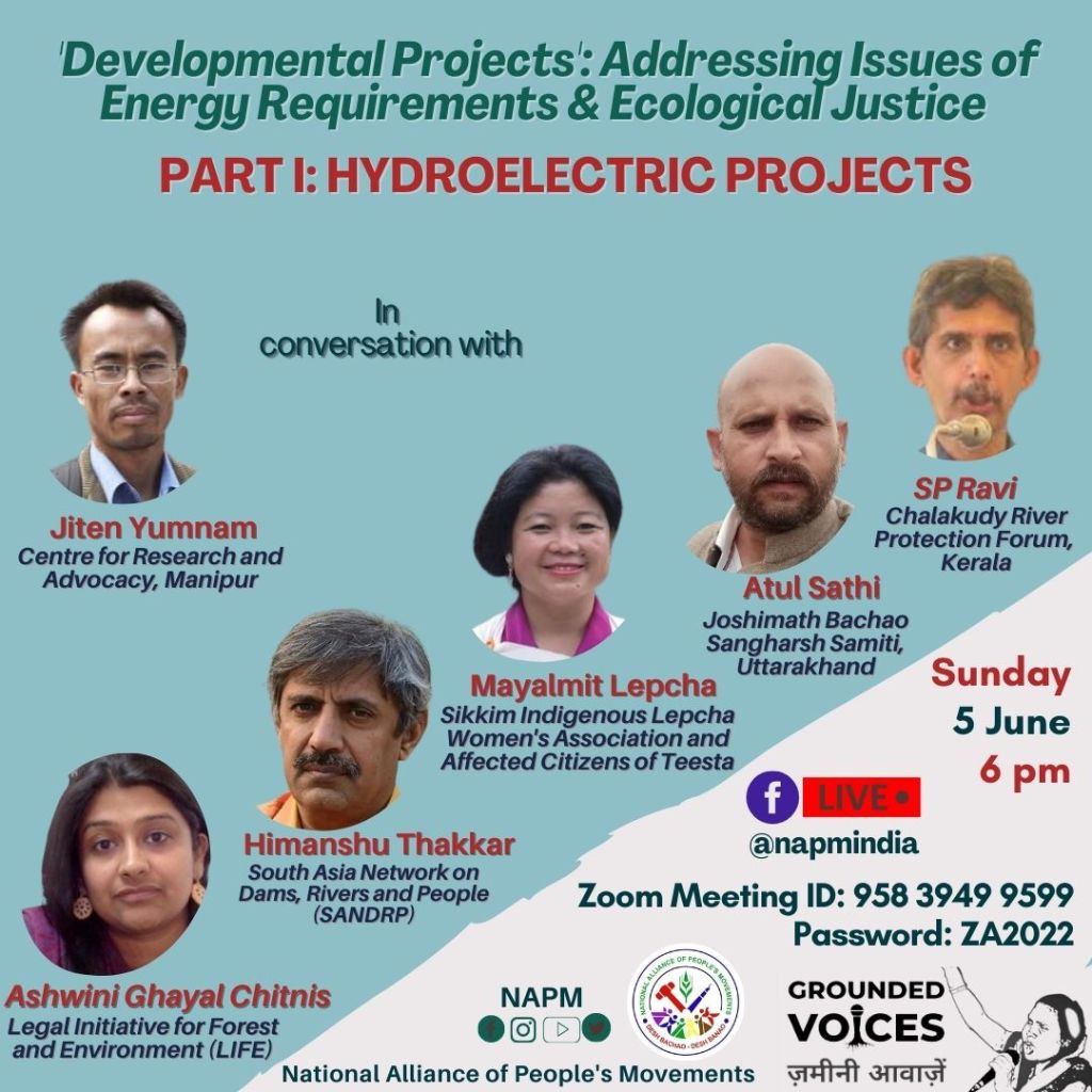Webinar NAPM discussion on Hydropower projects under Addressing Issues of Energy Requirements & Ecological Justice. 6 pm on June 5, 2022. See details below.