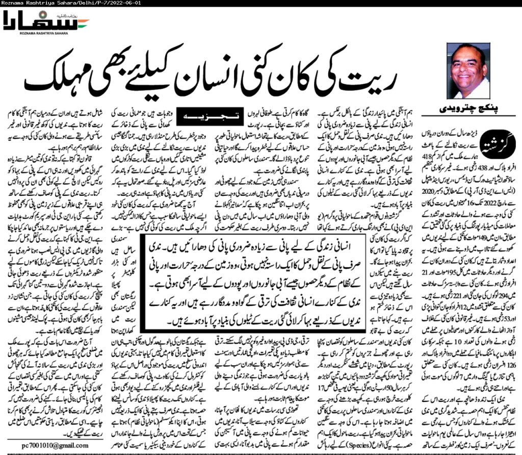 Convener of Yamuna Jiye Abhiyan Manoj Misra said cleaning the Yamuna to bathing standards within the stipulated time seems less likely going by the track record of agencies like the Delhi Jal Board. “But it can be done if you set your benchmark high and think of achieving the impossible,” he said. Besides rehabilitating sewage treatment plants, equal attention should be given to unauthorised industrial activity. Industrial effluent is far worse than sewage, Mr. Misra said. https://www.thehindu.com/news/national/possible-to-clean-yamuna-to-bathing-standards-by-2025-experts/article65404714.ece (11 May 2022)