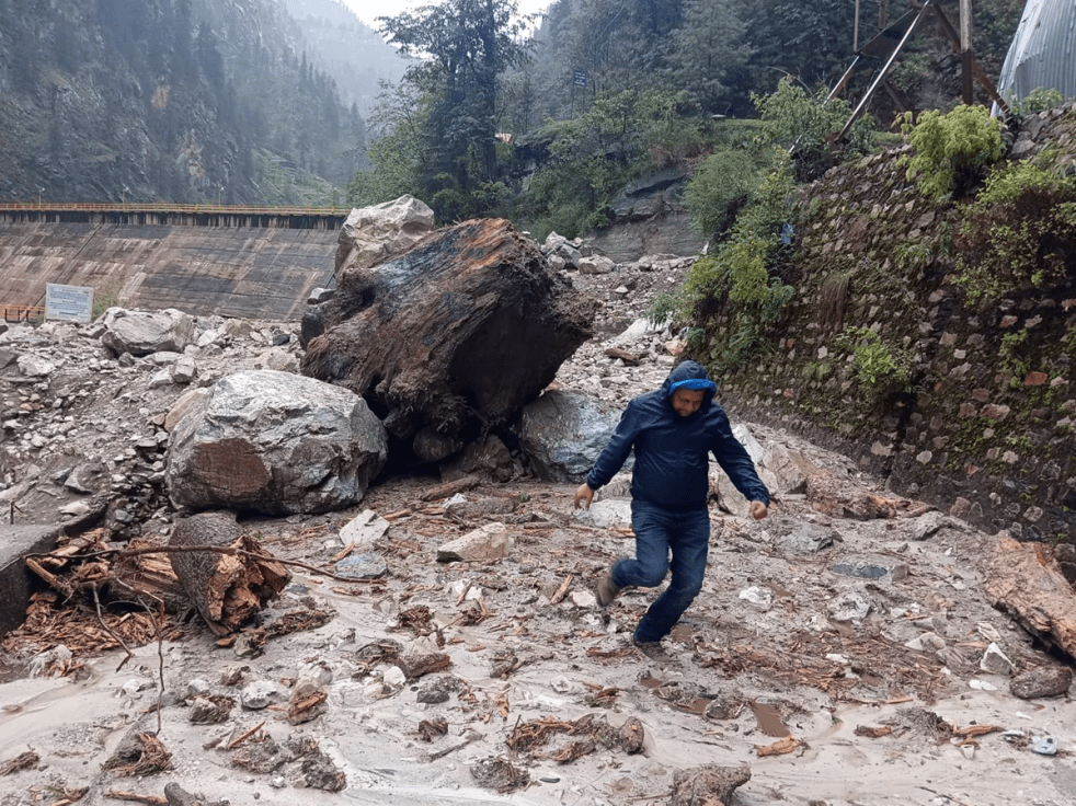 (Feature Image:- कुल्लू की मणिकर्ण घाटी के चोज गांव में बादल फटा है. मलाणा डेम साइट के पास से भागता युवक. Source: News 18 Himachal Pradesh)