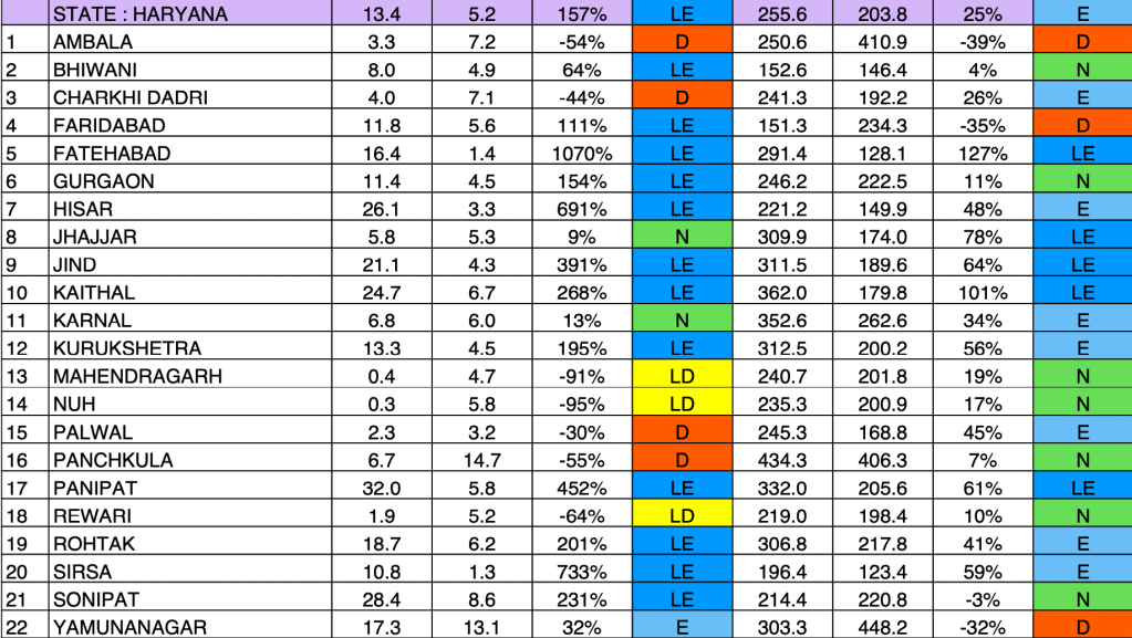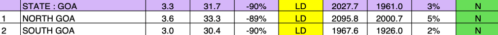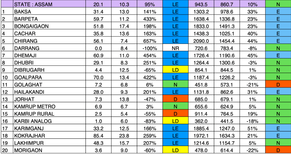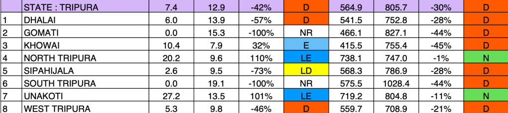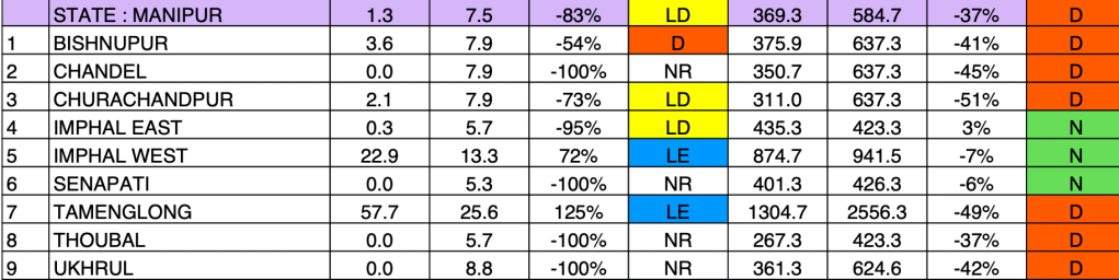 DISTRICT WISE STATE WISE RAINFALL The tables of district wise rainfall for each state should be read with the following portion of table that provides the nomenclature for the columns of the table. We are giving it hear since it is not there with all the tables. Also, for a number of states, the tables come in two parts, as mentioned on top.