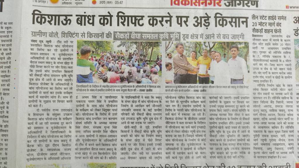 Uttarakhand Farmers demand shifting of Kishau dam location to save hundreds of bighas of fertile land from submergence. (Dainik Jagran, 19 Aug. 2022)