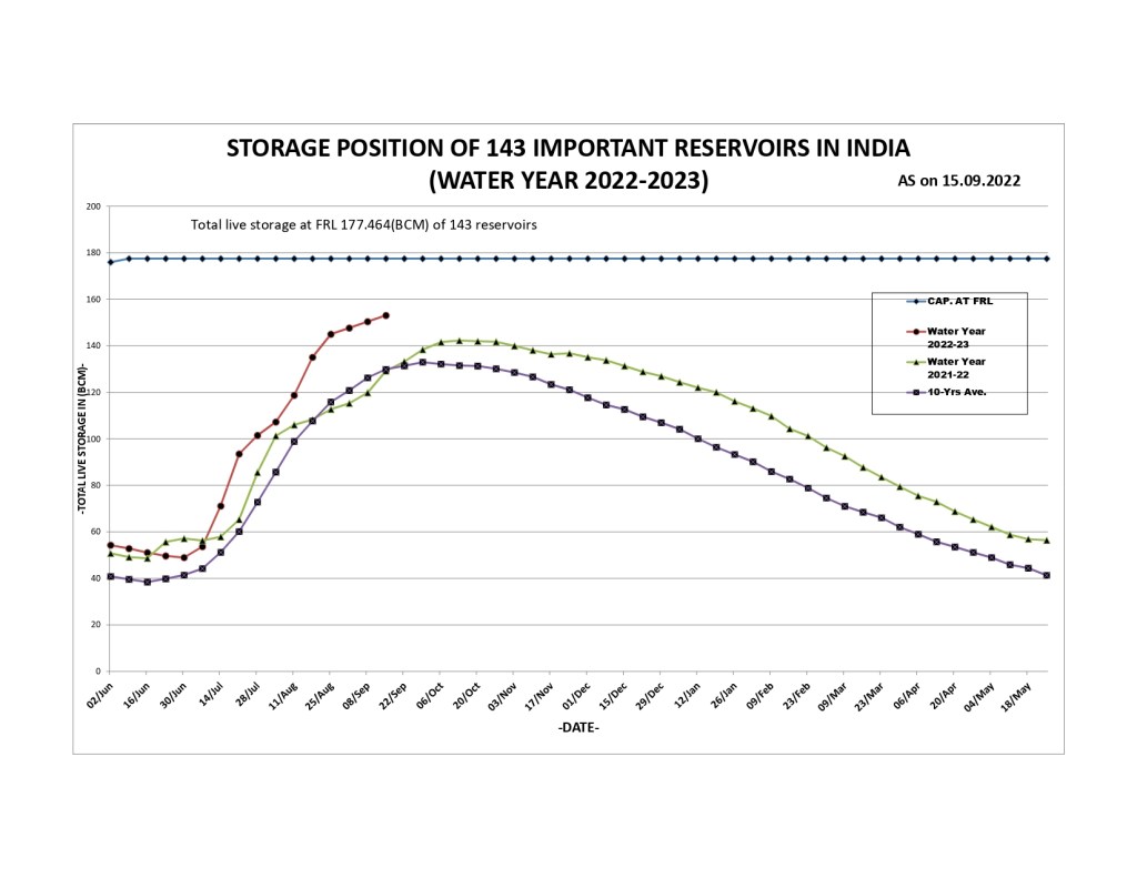 Last year the live storage available in these reservoirs for the corresponding period was 129.127 BCM and the average of last 10 years live storage was 129.871 BCM. http://www.cwc.gov.in/sites/default/files/15092022-pdf.pdf