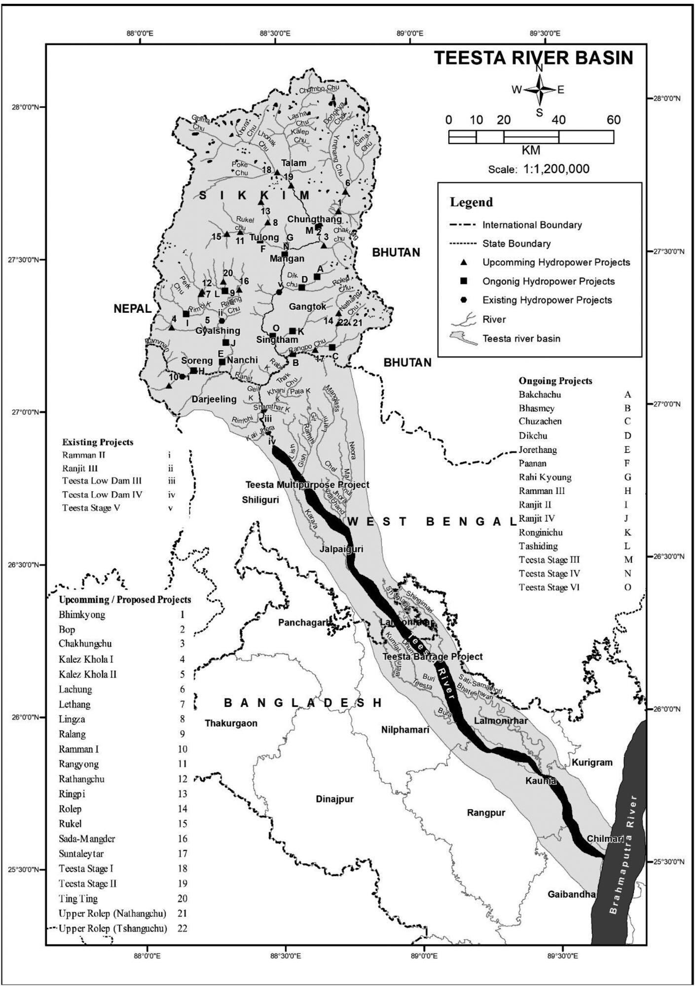 There are currently three hydropower projects–Teesta Low Dam III, Teesta Low Dam IV and Teesta V–running on the river with two others on its tributaries Rangit and Rammam. At least 15 other hydel projects, 14 in Sikkim and one in West Bengal, will come up on the Teesta basin in the coming years. Teesta Low Dam III regularly impounds water for weeks in the region, including Geilkhola, between Teesta Bazar and Rambi where the proposed Riyang station will come up. It threatens the livelihood and security of local residents in the area, as per a 2016 study published in the Journal of Politics & Governance.