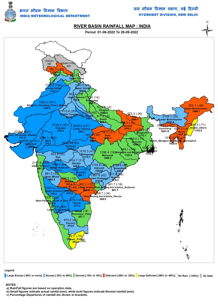 However, last year the live storage available in these reservoirs for the corresponding period was 138.154 BCM and the average of last 10 years live storage was 133.804 BCM. Thus, the live storage available in 143 reservoirs as per 22.09.2022 Bulletin is 113% of the live storage of corresponding period of last year and 117% of storage of average of last ten years. http://cwc.gov.in/sites/default/files/22092022-fb.pdf