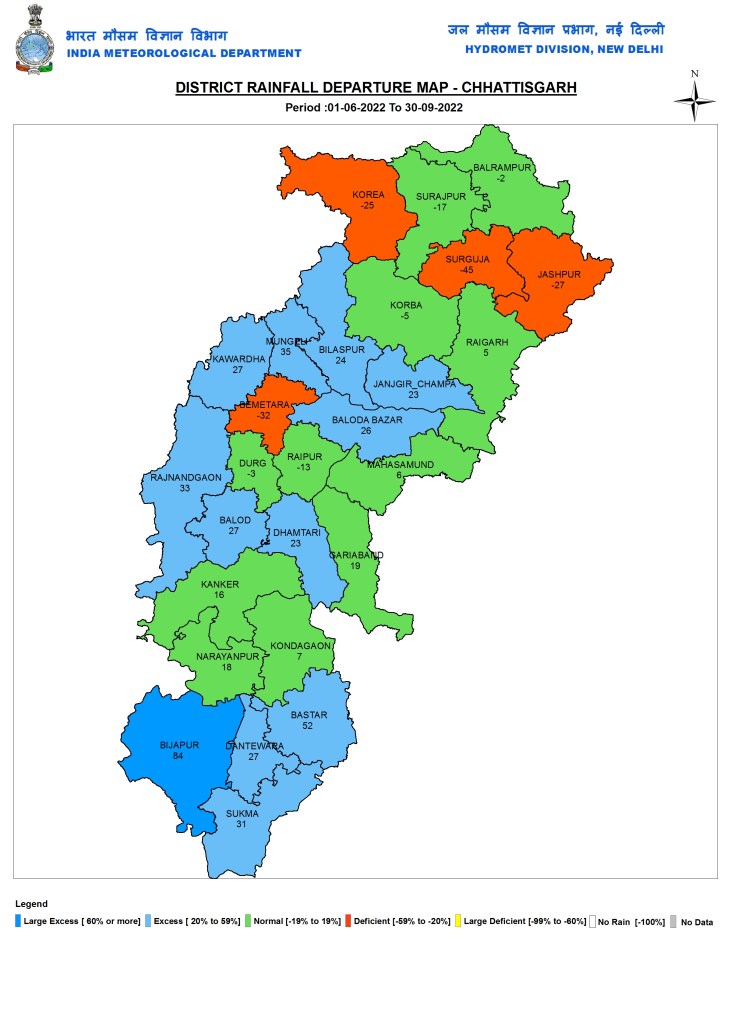 All India District wise rainfall departure map The map below provides district wise picture of rainfall at all India level and in four regions of India.