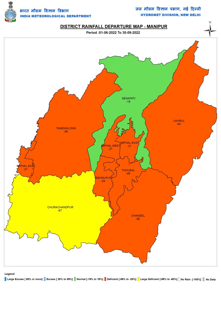 This is clear from the map, where was can see that IMD reports NO RAIN in whole of the four month long monsoon 2021 in Vaippar Pamba river basin in TN-Kerala. THIS IS AN IMPOSSIBILITY, looking at the district wise rainfall in these areas in the maps below, among others. This kind of situation keeps repeating year after year, though number of basins where this happened this year is lower. IMD also reports NO DATA in several basins including: Jhelum, Upper Indus. The low rainfall shown in Imphal and other basins in Manipur also raises doubts if that is correct.