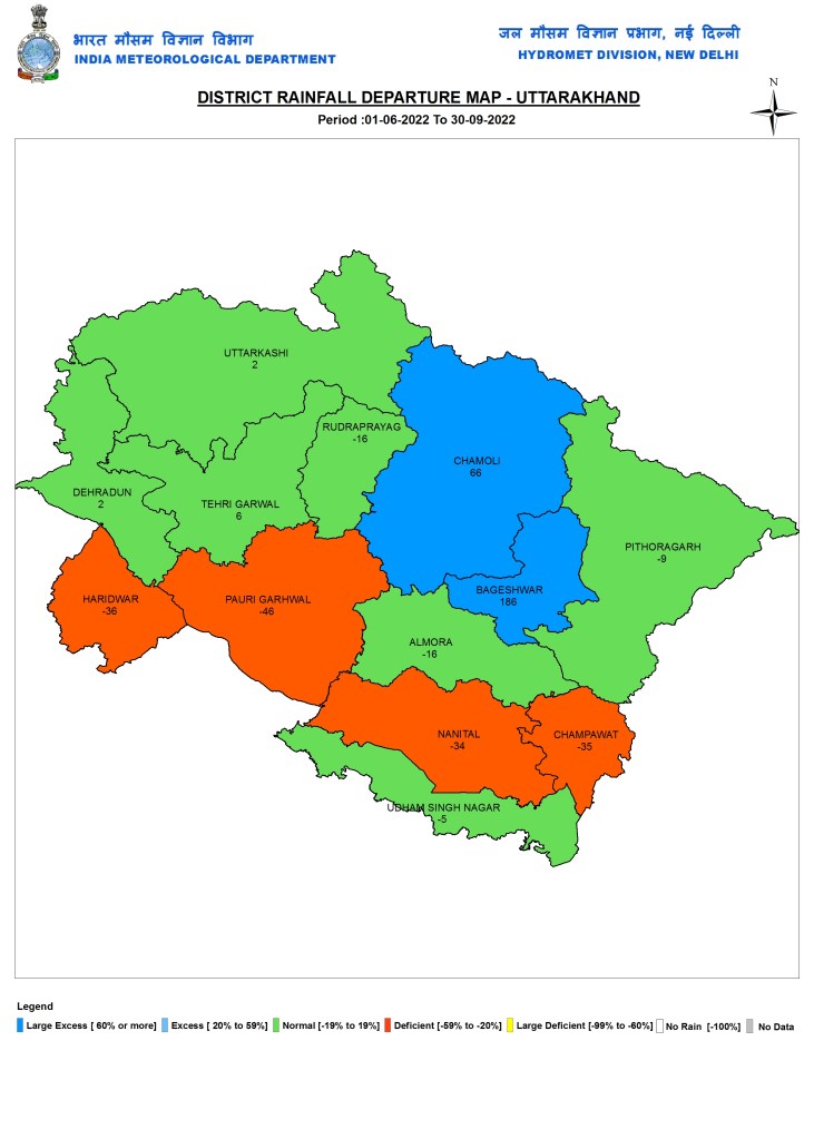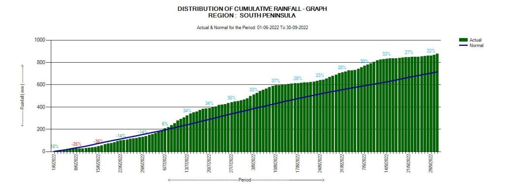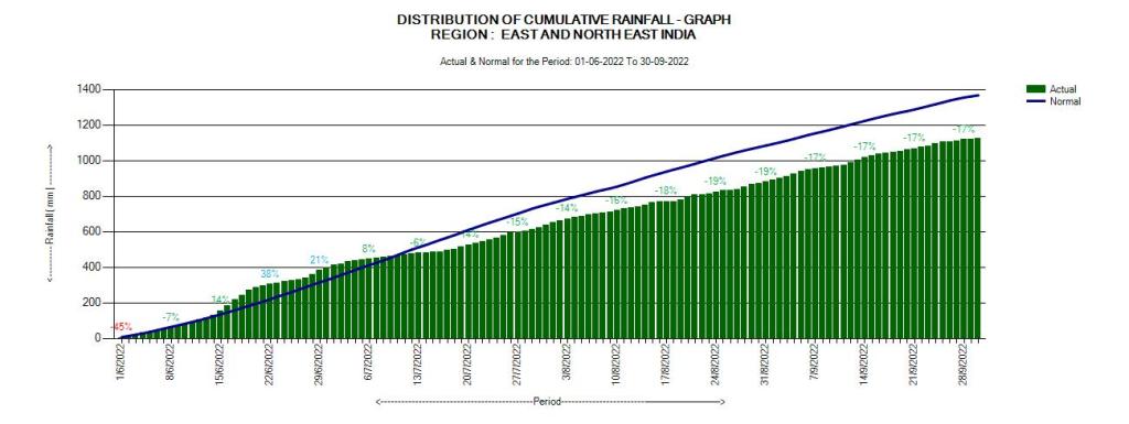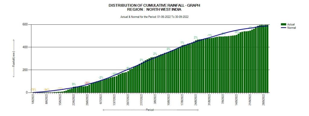 The month-wise distribution of rainfall during the SW Monsoon 2022 was as follows.