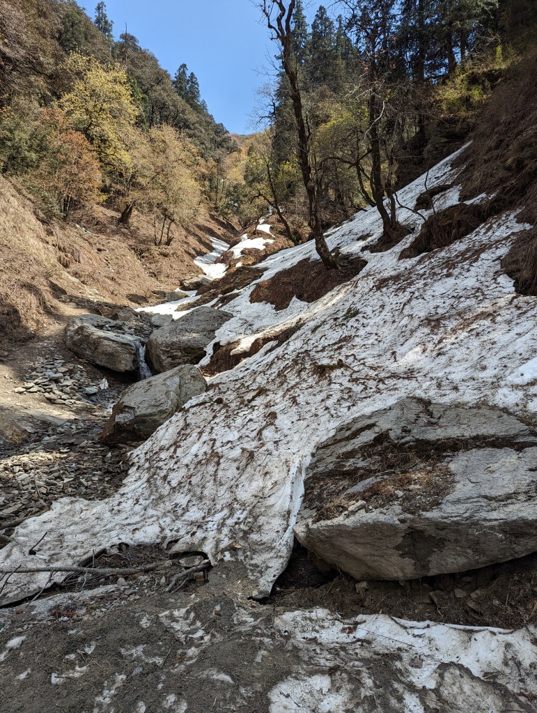 Tirthan in Great Himalayan National Park. Photo: Abhay KanvindeSnow packs near Jalori Pass. This snow pack gradually feeds Jibhi Khad, Tirthan’s tributary. Photo: Abhay KanvindeTirthan in Great Himalayan National Park. One can see the watershed limits at the horizon. Photo: Abhay KanvindeHippo Point as Tirthan gurgles out of the GNHP. Photo: Abhay KanvindeTirthan at the boundary of GNHP. Photo: Abhay KanvindeSmall rivulets meet the Tirthan, bringing the nutrients from Himalayan Forests. Photo: Abhay KanvindeTirthan after confluence with Palchan Khad at Gada Gushaini, first big village. Photo: Abhay KanvindeQuick sketch of the scene by artist Jitendra Ghatge from Nashik Water diverted for a trout farm. The water meets the river back again. Photo: Abhay KanvindeDebris of a road construction falling into the Tirthan, obstructing its flow at Ropa VIllage. Photo: Abhay KanvindeAnglers meditating for a Trout in Jibhi Khad. Photo: Abhay KanvindeGharats: Local Flour mills running on Tirthan waters, the waters go back in the river. Photo: Abhay KanvindeWaterfalls are worshipped in the Tirthan Valley as “Chhoi Mata”. Photo: Abhay KanvindeRaju Bharti on the banks of Tirthan. The family and their lodge have played a pivotal role in protecting the free flowing status of Tirthan. Photo: Abhay KanvindeFlow! Trout Farm near Gushaini raising Rainbow Trouts to be stocked in the river. This is adjacent to the river. Photo: Abhay KanvindeTrout Farm near Gushaini raising Rainbow Trouts to be stocked in the river. Photo: Abhay KanvindeConfluence of Jibhi Khad and TIrthan River at Banjar. Photo: Abhay KanvindeRiver Worship at Banjar, Tirthan River. Photo: Abhay KanvindeWaste Dump dangerously close to the river at Banjar. Photo: Abhay KanvindeTwo photos of Lift Irrigation project n the Tirthan, supplying irrigation water to 4 villages in Tirthan Valley. Photo: Abhay KanvindeKotla Gopalpur Stage I Water Supply scheme bringing drinking water to several village homes in the Tirthan Valley. Photo: Abhay KanvindeOne more drinking water supply scheme jackwell in Tirthan. Photo: Abhay KanvindeAs the river nears its exit point to the valley, it is disturbed more and more. Photo: Abhay KanvindeStone crushing next to the river. Photo: Abhay KanvindeFinally after the confluence with Sainj and Beas River, the trijunction is promptly dammed Larji Hydropower Project Dam. Photo: Abhay KanvindeWarning at Larji Dam Site which claimed more than 24 lives in 2014 as water was released from the dam. Photo: Abhay KanvindeSee the entrance of fish ladder at Larji on the right. It is impossible for the fish to jump into this ladder. Photo: Abhay KanvindeBeas, which has Tirthan’s flow is dry, diverted and encroached downstream Larji.A flowing, beautiful river converted into a “Dangerous” River after damming. Photo: Abhay Kanvinde