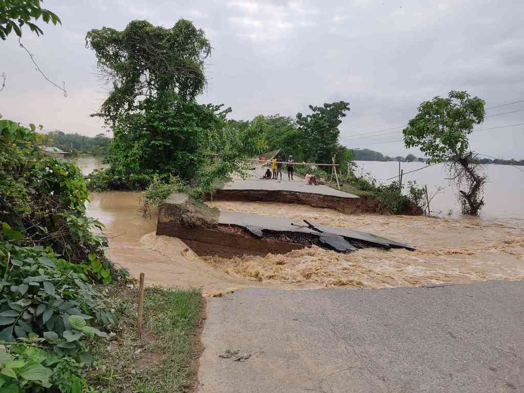 Hundreds of houses in low lying Kevalari area in Bhimgarh township were flooded. About 500 meters concrete road from Bhimgarh to the colony was washed away.