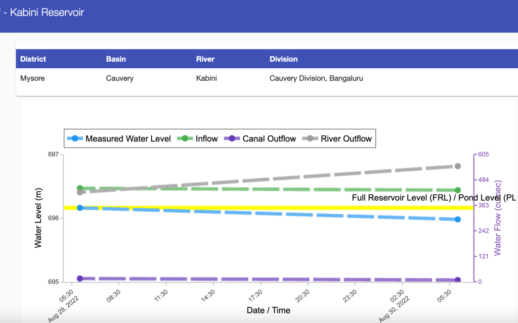 Same situation prevails at Kabini reservoir in the same Cauvery river basin, FRL already achieved on Aug 29, and now water being released to flooded river to reduce the FRL, increasing outflow.