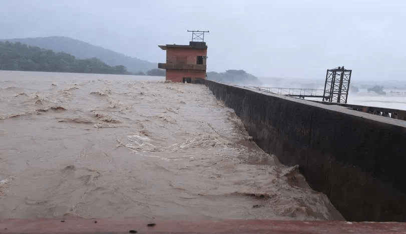 The Tungabhadra dam, with a storage capacity of 1,633 feet, already has water level reaching 1,631 feet. To maintain the balance, 1 lakh cusecs of water was released, which has created a flood scare among the people living in the lower riparian of Tungabhadra dam. Of the 33 floodgates, 30 were opened on Sunday, August 7, following which many heritage sites of the Vijayanagara dynasty in Hampi were submerged. https://www.thenewsminute.com/article/karnataka-rains-gate-tungabhadra-dam-opened-districts-alert-taking-166615 (08 Aug. 2022)