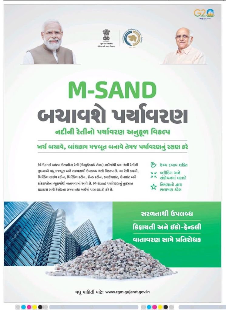 Gujarat govt advertising that M sand is more environment friendly alternative to river sand.