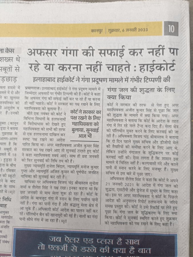 The amount can be deposited by Rajasthan in a separate ring-fenced account within two months and it will be operated according to directions of the chief secretary, and utilised for restoration measures, it had said. The restoration measures concerning sewage management would include setting up sewage treatment and utilisation systems, and upgrading systems or operations of existing sewage treatment facilities to ensure utilisation of their full capacities, the tribunal had said. https://theprint.in/india/sc-stays-ngt-order-directing-rajasthan-to-pay-rs-3000-cr-as-environmental-compensation/1268573/ (16 Dec. 2022)