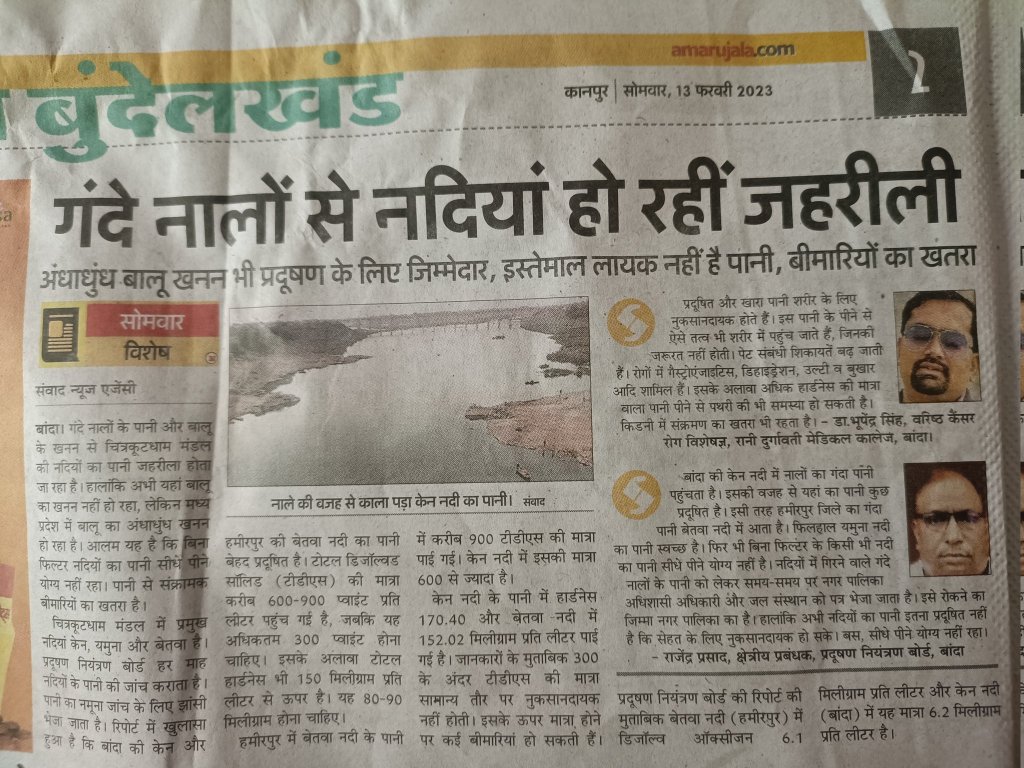 Sabarmati; Ahmedabad How beautification led to a polluted river “We don’t have a river anymore, just a reservoir that stinks all the time,” says Sunil Bhai, who runs a learning centre for slum children in Shankar Bhuvan in Ahmedabad. Shankar Bhuvan Basti is on the banks of the Sabarmati, which was recently declared the second most polluted river in India by the CPCB. With a BOD of 292 mg/l, it is next only to the Cooum in Tamil Nadu, which has a BOD of 345mg/l. The CPCB considers water under 3mg/l BOD as safe for bathing. https://timesofindia.indiatimes.com/india/how-beautification-led-to-a-polluted-sabramati/articleshow/97861595.cms (13 Feb. 2023)