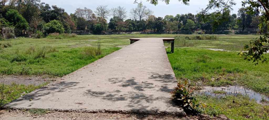 Near entry point from West side, a part of the lake has been carved out and converted into swimming pool for children. Most of the time it remains dry and is filled with groundwater when required.