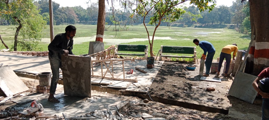 Currently, tiling and repair work of walking track around the lake area is undergoing.