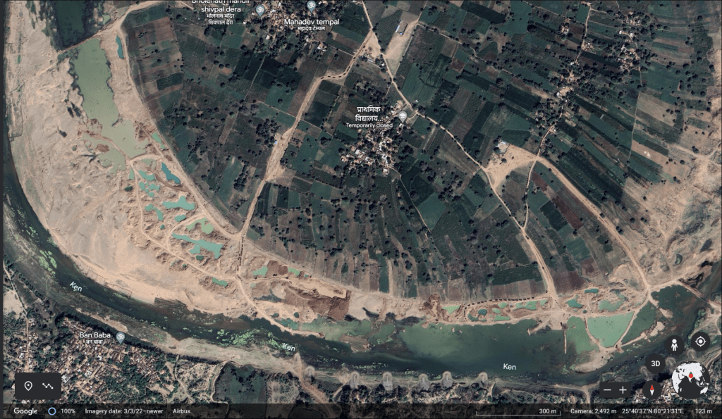 (Feature Image: March 2022 Google Earth image showing excessive mechanized mining in Ken river at Chatkan meander in Banda)