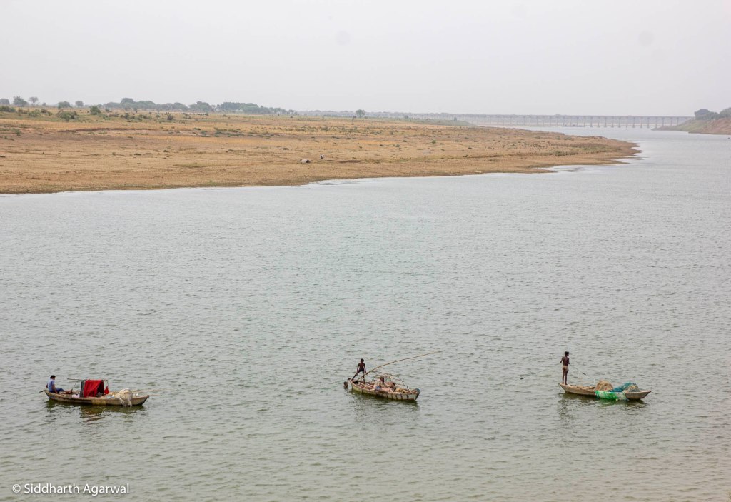 The 70 kilometers long river stretch between Singhasar village of Pawai and Rohania village in Shahnagar town thrilled us with one more stunning feature of the river. Now the place of Dabra was taken by another feature which were 10 to 15 kilometers long water channels formed in riverbed at some places which the local people were calling Dahar or Daun. The river width had fallen to about one-third. Here the natural beauty of the Ken along the Dahars and the rural life going around it looked unmatchable.