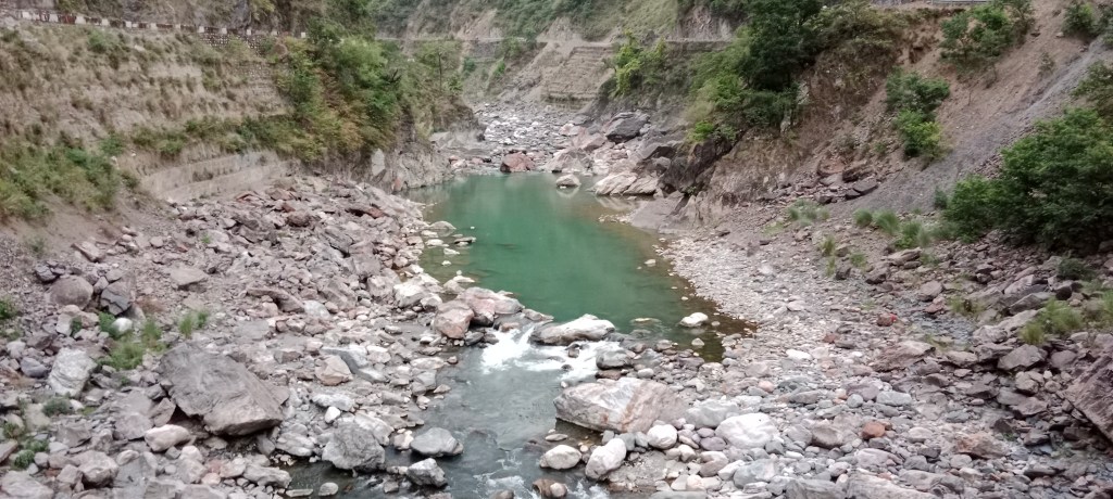 Last year when the UJVNL started taming the river, downstream the dam dead fish could be seen spread over the riverbed, they used to thrive on. Same is going on but at lower scale to fresh water species rehabilitating the river downstream the Vyasi HEP dam which more than often is reduced into a flowless water channel.