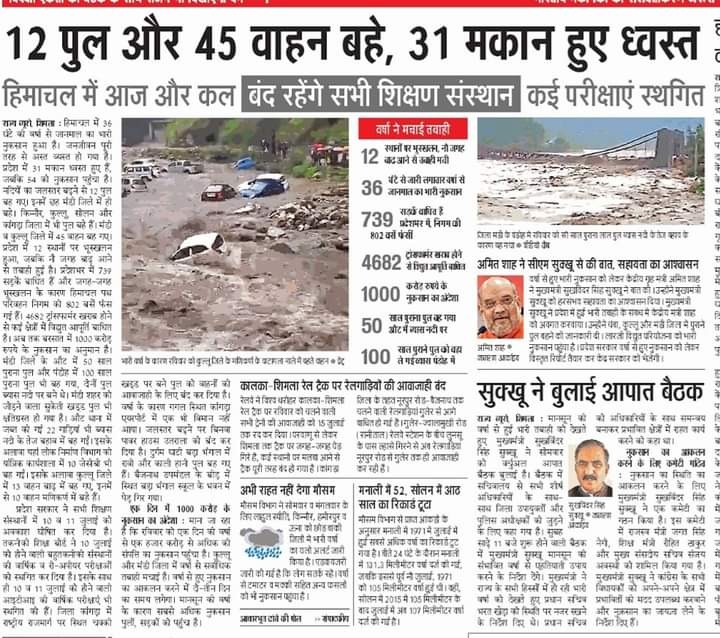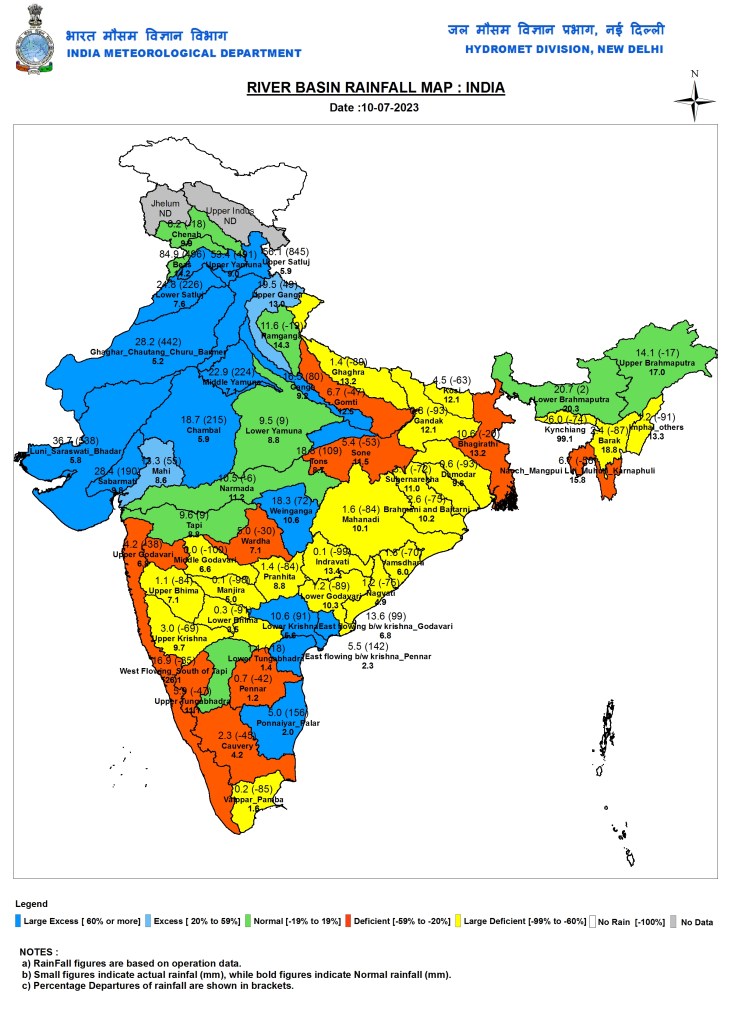 Meanwhile, helped by the heavy downpours in the north, the nationwide monsoon deficit was wiped out and cumulative rainfall in the season recorded a surplus of 2% for the first time since June 1. Over the past two days, two weather systems have been active over north India. https://timesofindia.indiatimes.com/india/a-2-system-confluence-similar-to-the-kedarnath-flood-led-to-torrential-rain/articleshow/101621498.cms (10 July 2023)