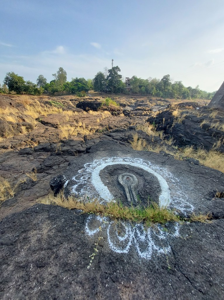 In addition to this diversity, Vaitarna holds a spectacular fish sanctuary at Tilase village (Wada Block, Palghar District) known as Tilase Fish Sanctuary: pool with God’s Fish ( देव मासे). I visited the Sanctuary once in 2013 and then in November 2022 with naturalists Aniket Motale and Vrushali Phatak. Tilase Sanctuary adjoins Tilaseshwar Mahadev, an ancient Shiva Temple placed on a boulder, in the middle of the Vaitarna Riverbed. The Sanctuary is a deep riverine pool, about 300 meters in length. Immediately upstream the pool is a Kolhapur-type weir (KT Weir) which restricts river flow into the sanctuary. In the downstream, it is limited by shallow, basalt riverbed.